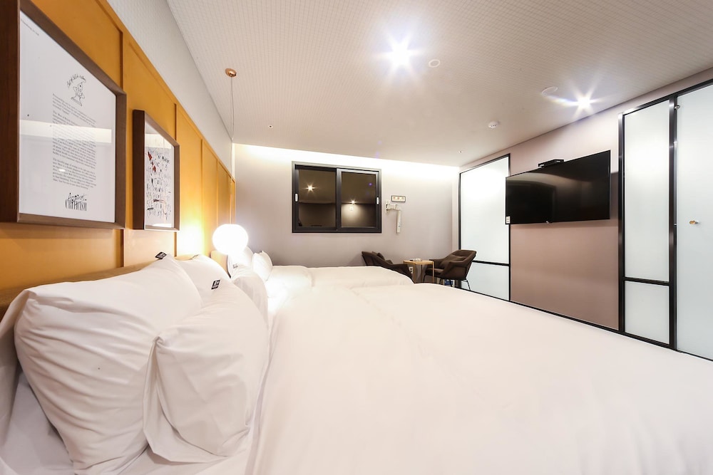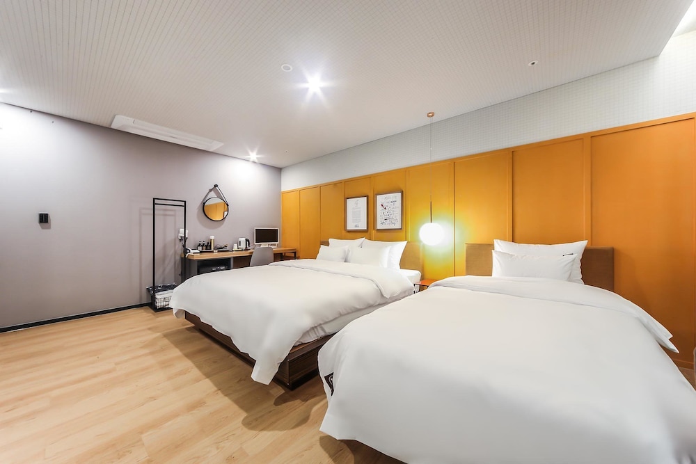 Browndot Hotel - Gold placerar dig mitt i Pusan, en 2 minuters bilfärd från Lotte Department Store, Busans huvudcenter och 6 minuter från Nampodong Street.  Detta hotell ligger 6,3 km från Busan Tower och 6,4 km från Gukje-marknaden. Skäm bort dig och bo i ett av 70 rum med golvvärme och platt-tv. Sängen har memory foam-madrass, duntäcken och egyptiska bomullslakan. Kök utrustat med kylskåp och mikrovågsugn. Gratis wi-fi gör att du kan hålla dig uppkopplad, och kabel-tv erbjuder underhållning. Avstånd avrundas till närmsta decimal.