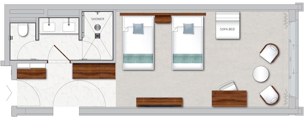 - Anslutande rum kan erbjudas i mån av tillgång. Gäster kan be om anslutande rum genom att kontakta boendet direkt med kontaktuppgifterna i bokningsbekräftelsen.