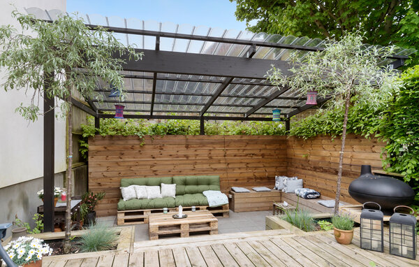 Denna bekväma och rymliga semesterlägenhet med stora terrassområden och många bekvämligheter väntar på dig i ett centralt läge i Randers.