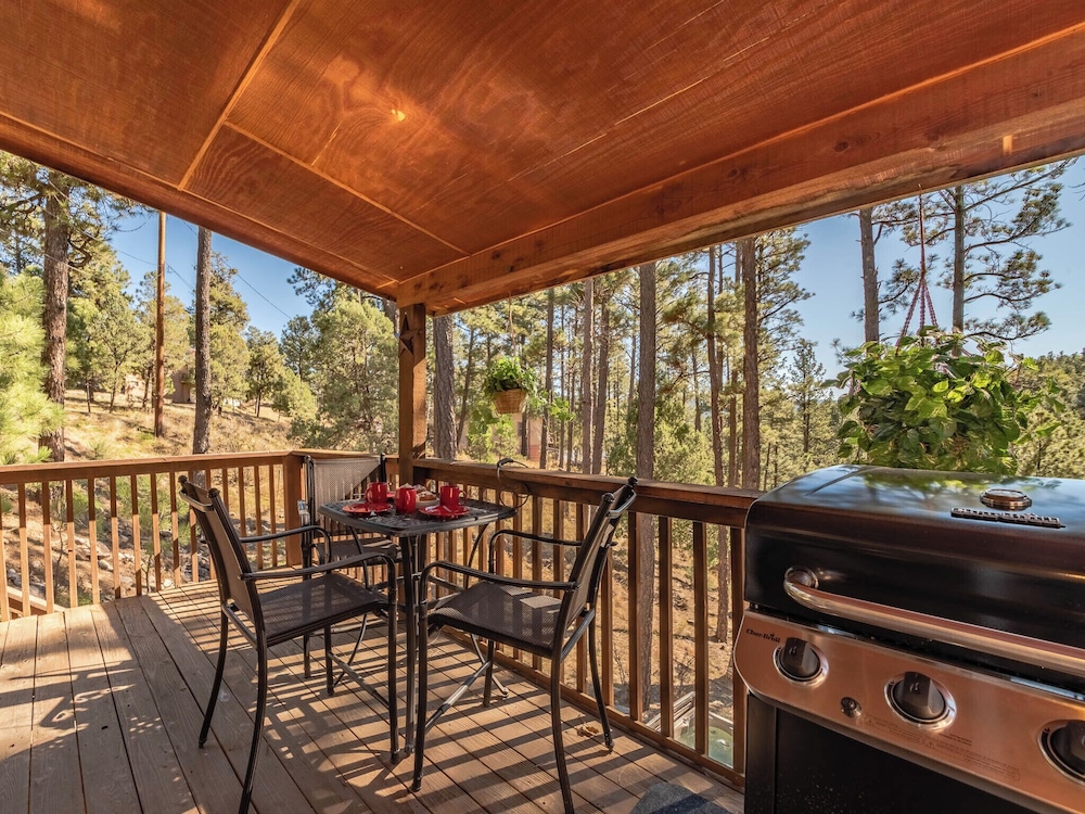 Denna stuga ligger i Ruidoso, en fem minuters bilfärd från både Wingfield Park och Cree Medows Public golfbana. Denna stuga ligger 2,7 km från Grindstone Lake och 3,6 km från Pillow's Funtrackers. Skäm bort dig själv och bo i den här individuellt inredda stugan, som har eldstad. Köket är utrustat med en ugn, en spishäll och en mikrovågsugn. Kabelkanaler och en dvd-spelare erbjuder underhållning. Bekvämligheter som ingår är torktumlare och strykjärn/strykbräda. Avstånd avrundas till närmsta decimal.