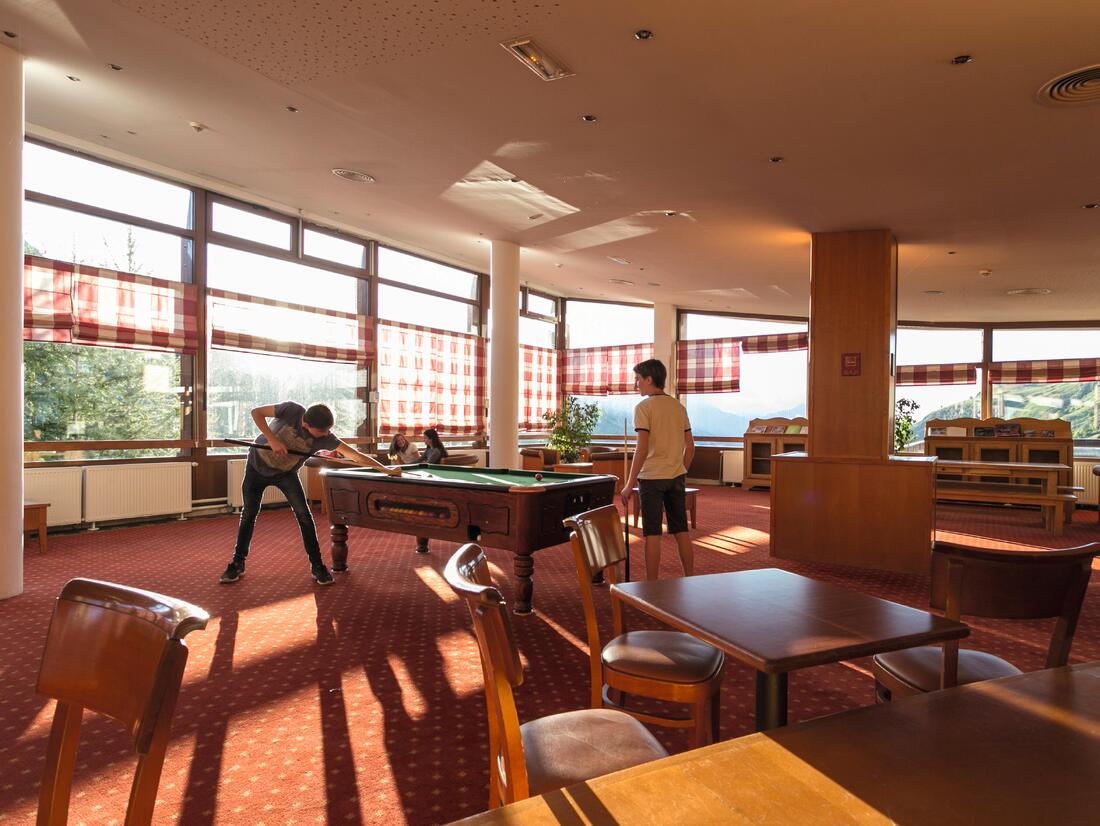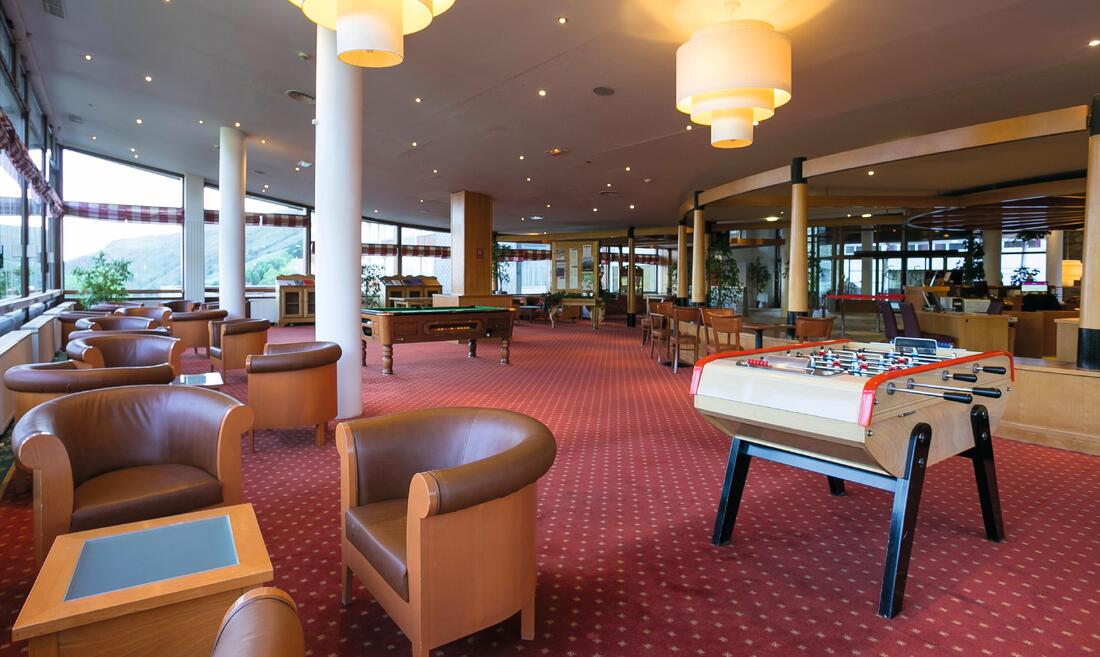 Här finns också en mysig bar med en stor solig terrass med underbar utsikt över bergen. I hallen kan du koppla av framför den öppna spisen.