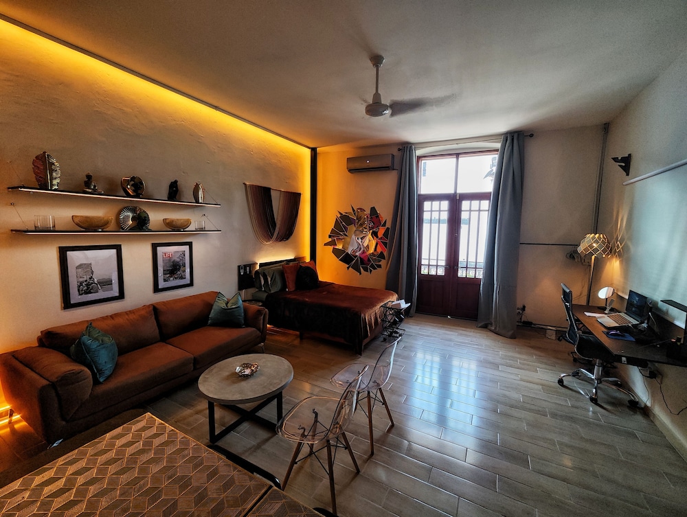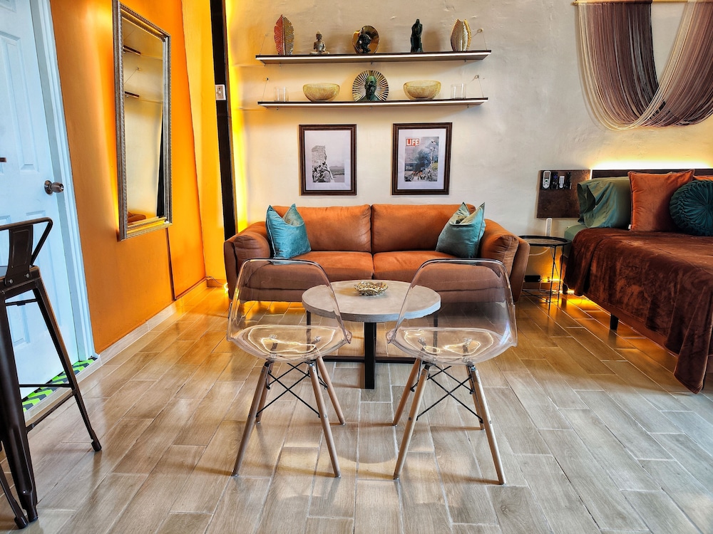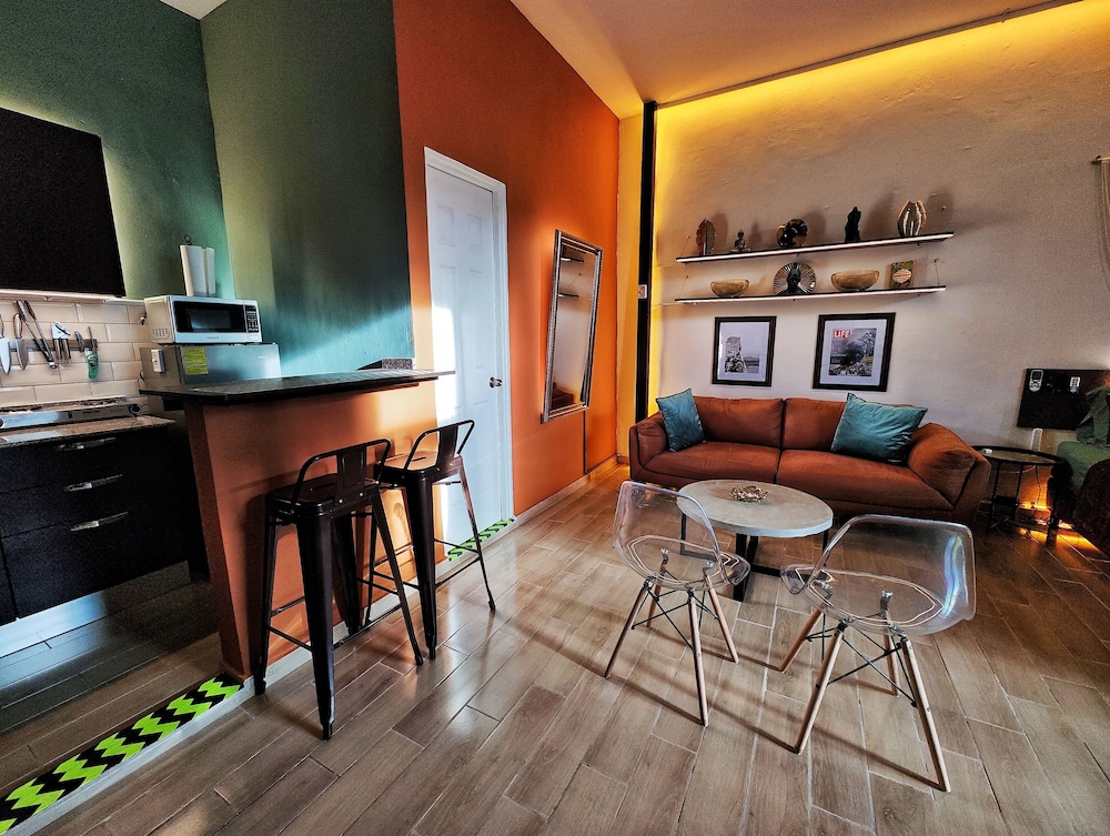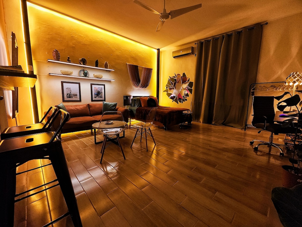 Golden Studio By Paradox ligger centralt i Panama City, 4 min promenad från Avenida Balboa och 8 min från Cinta Costera. Detta lägenhetshotell ligger 5 km från Albrook köpcentrum och 6,3 km från Centro Comercial Multiplaza. Känn dig som hemma i ett av de 8 individuellt inredda rummen som har kök med stor kyl/frys och mikrovågsugn. Gratis wi-fi ser till att du kan hålla dig uppkopplad, och en 50-tums LED-tv med digitalkanaler erbjuder all underhållning du behöver. På rummet finns skrivbord och kaffe- och tebryggare. Avstånd avrundas till närmsta decimal.