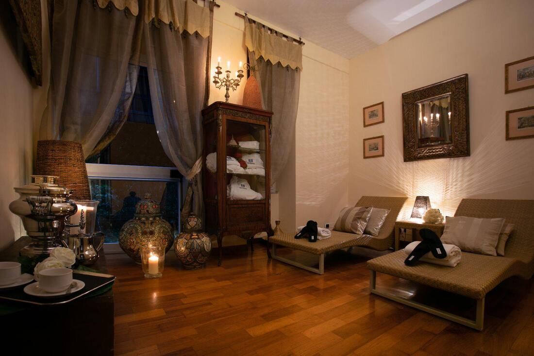 Restaurangen "Il Basilico", där tradition står i fokus och menyn erbjuder lokala rätter, främst från havet. Förutom restaurangen finns här en relax avdelning, gym, en bar samt en mysig liten trädgård med sittplatser i både sol och skugga. Rummen är elegant inredda i ljusa toner som ger en avkopplande känsla.