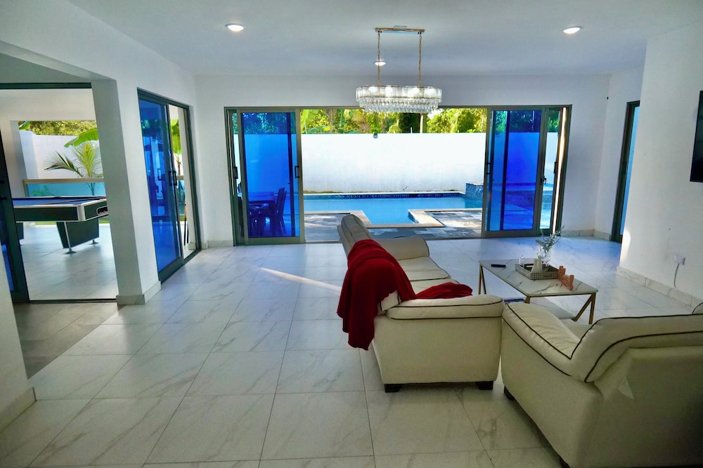Denna villa ligger i Santo Domingo Oeste, en kvarts bilfärd från både Blue Mall och Malecon. Denna villa ligger 22,3 km från Jehovas vittnens Rikets sal och 8,1 km från USA:s ambassad. Slå dig till ro i den här luftkonditionerade villan som har privat pool. Köket är utrustat med en stor kyl med frys, en ugn och en spishäll. Gratis wi-fi gör att du kan hålla dig uppkopplad. Avstånd avrundas till närmsta decimal.