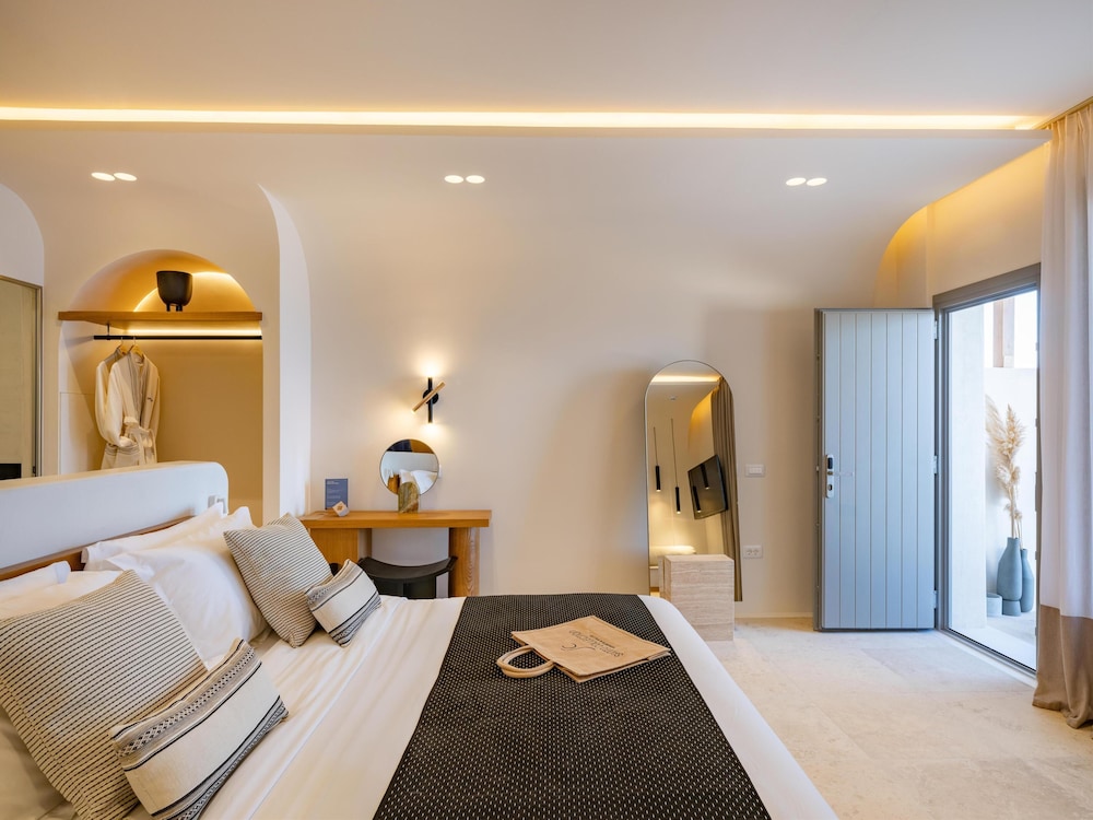 Santo Mine Oia Suites ligger i Santorini, en tio minuters promenad från både Santorini caldera och Oia Blue Domes utsiktsplats. Detta hotell i lyxstil ligger 0,7 km från Oia slott och 20,7 km från Kamari strand. Känn dig som hemma i ett av de 37 individuellt möblerade rummen med minibarer och espressobryggare. Rummen har privata inredda balkonger/terrasser. Gratis wi-fi gör att du kan hålla dig uppkopplad, och en smart-tv med satellitkanaler erbjuder all underhållning du behöver. Privat badrum med dusch, hårtorkar och badrockar. Avstånd avrundas till närmsta decimal.