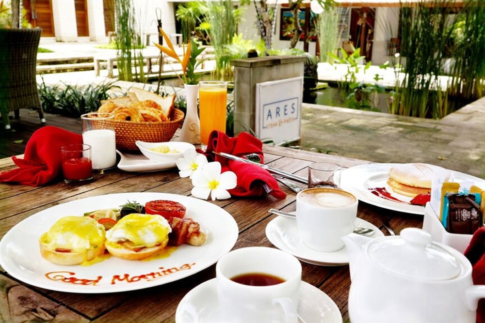 Gäster har tillgång till bland annat gratis internet, business-service och gratis dagstidningar i lobbyn. Gäster erbjuds flygtransfer tur/retur mot en avgift (tillgänglig på begäran), och avgiftsfri parkering finns på plats. Skäm bort dig med ett besök på deras spa, som erbjuder bland annat massage, kroppsbehandlingar och ansiktsbehandlingar. Här har du tillgång till bland annat utomhuspool och fitnesscenter. Boendet har även gratis wi-fi, conciergetjänster och en souvenirbutik eller tidningskiosk. Du kan äta gott på Ares Restaurant, en restaurang med loungebar som erbjuder gäster möjligheten att avnjuta middagen under bar himmel. Föredrar du att ta det lugnt på rummet finns det dessutom rumsservice (under begränsade tider). Engelsk frukost serveras dagligen mot en avgift från 07.00 till 10.00. I enlighet med lokala bestämmelser måste alla besökare stanna på boendet under det hinduiska nyårets dag av tystnad, Nyepi, under ett dygn (med start kl. 06.00). Nyepi infaller oftast i mars eller april (datumen ändras varje år). In- och utcheckning sker inte under detta dygn. Ngurah Rai Airport (Bali International Airport) är också stängd under Nyepi.- Avgift för engelsk frukost: IDR 200000–300000 för vuxna och IDR 200000–300000 för barn (ungefärligt pris)