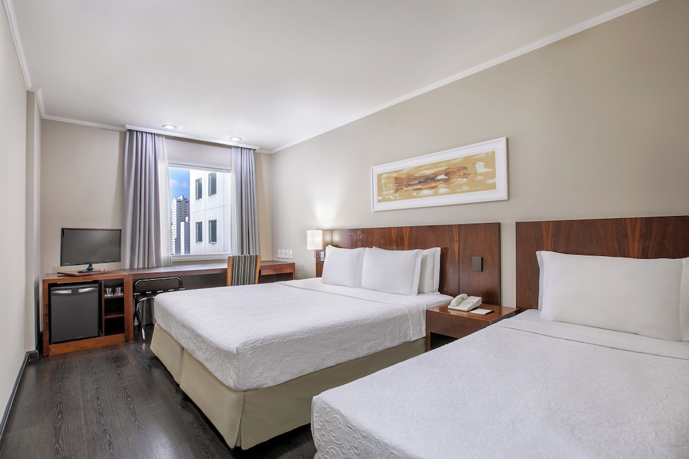 I São Paulo-området Santo Amaro ligger São Paulo Nações Unidas Affiliated by Meliá en tio minuters bilfärd från både MorumBIS och Ibirapuera-parken. Detta hotell ligger 10,8 km från Interlagos racerbana och 13,3 km från São Paulo Zoo. Känn dig som hemma i ett av de 400 rummen. Gratis fast internetanslutning och wi-fi erbjuds. Privat badrum med dusch, regndusch och gratis toalettartiklar. På rummet finns telefon, värdeförvaringsskåp och skrivbord. Avstånd avrundas till närmsta decimal.