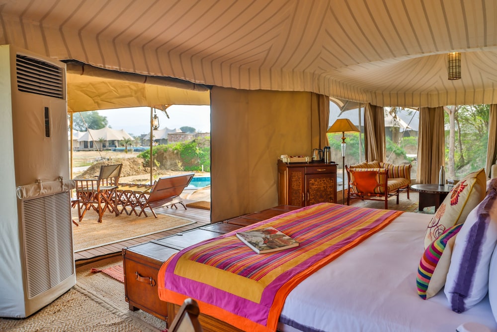 Sawai Shivir Ranthambore by TUTC ligger i Sawai Madhopur och placerar dig 4,5 km från Ranthambore Nationalpark och 13,3 km från Ranthambore Fort. Detta hotell med spa ligger 13,5 km från Jogi Mahal och 50,6 km från National Chambal Sanctuary. Känn dig som hemma i ett av de 14 luftkonditionerade rummen med minibarer. Sängen har memory foam-madrass och egyptiska bomullslakan. Rummen har privata balkonger/terrasser. Gratis wi-fi gör att du kan hålla dig uppkopplad. Privat badrum med dusch, regndusch och lyxtoalettartiklar. Avstånd avrundas till närmsta decimal.