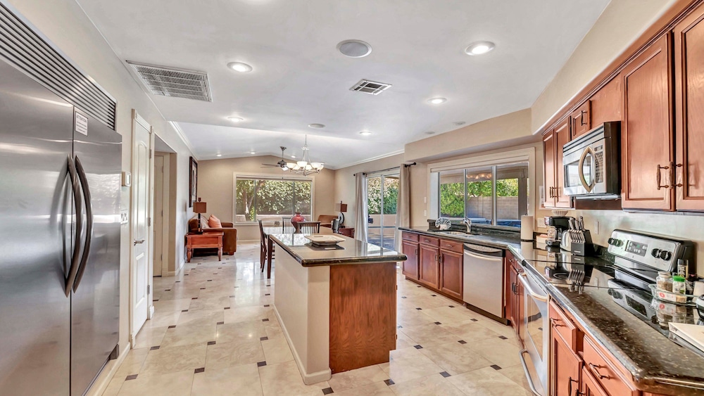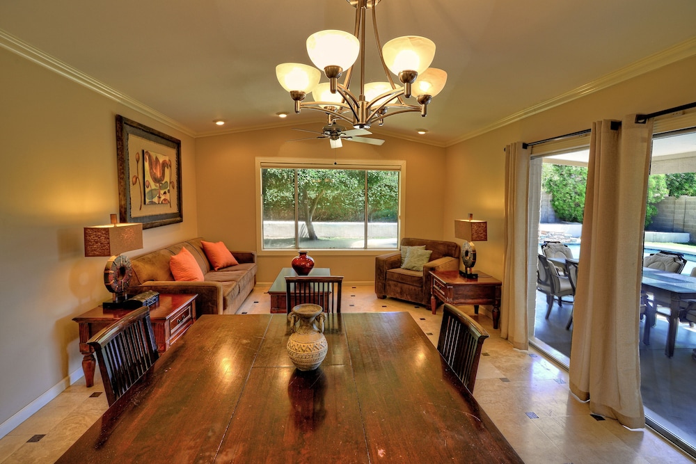 Denna villa ligger i Scottsdale (i området Paradise Valley Village), 4 min med bil från Kierland Commons och 7 min från Mayo Clinic Hospital. Denna villa ligger 17,1 km från Talking Stick Resort Casino och 27,3 km från Grand Canyon University. Slå dig till ro i den här luftkonditionerade villan som har privat bubbelpool utomhus. En satellit-tv erbjuder underhållning. Bekvämligheter som ingår är kylskåp och mikrovågsugn. Du kan också be om att få gratis spjälsäng. Avstånd avrundas till närmsta decimal.