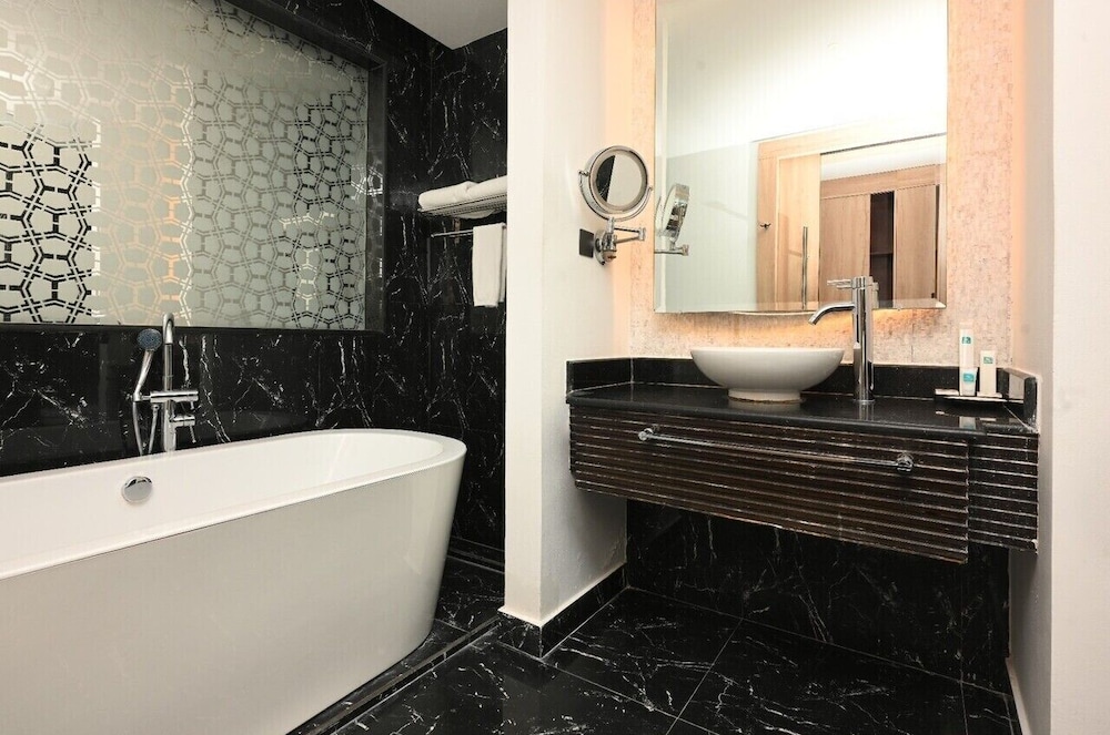 I Manama-området Seef ligger Nordic Palace & Spa, en kvarts promenad från både Seefs köpcenter och Qal'at al-Bahrain fornminne och museum. Detta hotell i lyxstil ligger 2,1 km från Bahrains köpcenter och 2,4 km från Bahrain International Exhibition & Convention Centre. Känn dig som hemma i ett av de 84 luftkonditionerade rummen med minibarer och LED-tv. Gratis wi-fi gör att du kan hålla dig uppkopplad, och satellit-tv erbjuder underhållning. Privat badrum med badkar eller dusch, lyxtoalettartiklar och hårtorkar. På rummet finns telefon, värdeförvaringsskåp och skrivbord. Avstånd avrundas till närmsta decimal.