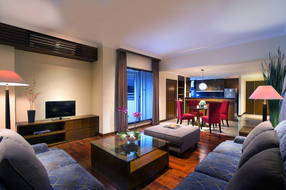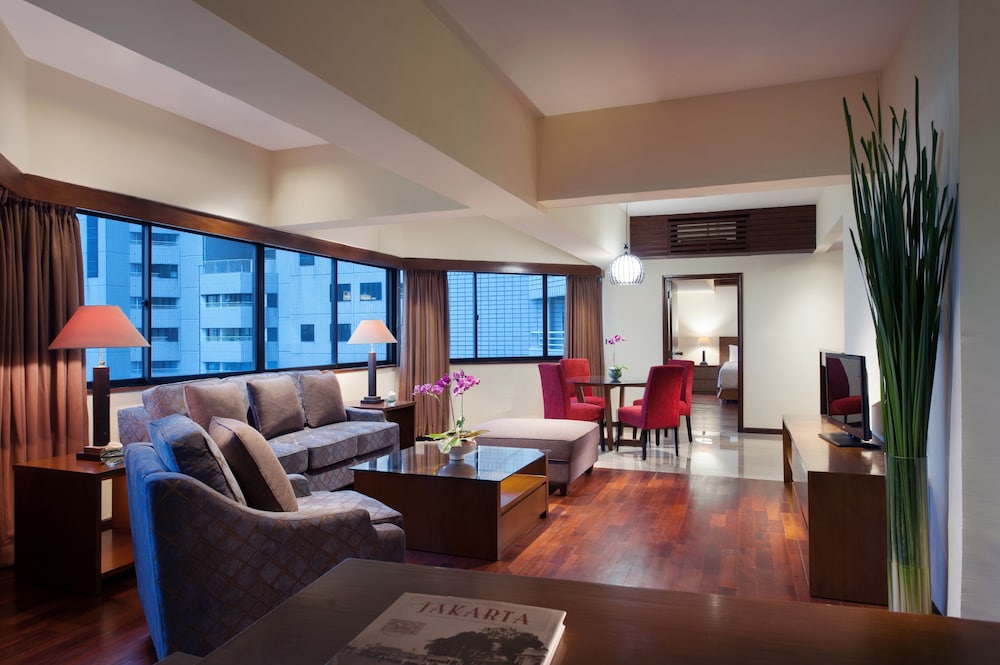 The Sultan Hotel & Residence Jakarta ligger centralt i Djakarta, 3 min med bil från Gelora Bung Karno Stadium och 6 min från Grand Indonesia. Detta hotell med familjevänlig profil ligger 5,2 km från Thamrin City shoppingcenter och 5,7 km från Blok M Square. Känn dig som hemma i ett av de 707 luftkonditionerade rummen med kylskåp och LED-tv. Gratis wi-fi gör att du kan hålla dig uppkopplad, och kabel-tv erbjuder underhållning. Badrummen med dush över badkar har djupa badkar och regndusch. På rummet finns telefon, värdeförvaringsskåp och skrivbord. Avstånd avrundas till närmsta decimal.