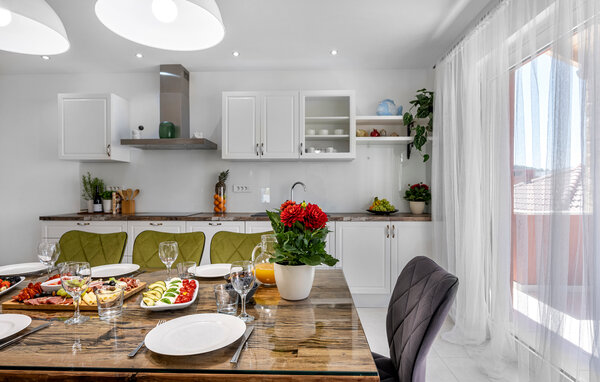 Detta bekvämt inredda semesterhus ligger bara några steg från stranden och skämmer bort dig med gott om utrymme och många extrafunktioner. Fira mysiga matlagningskvällar i det moderna köket och samlas runt det eleganta matbordet. Gör dig bekväm i den inbjudande soffgruppen, njut av en filmkväll i en stor grupp eller håll dig i form på motionscykeln.