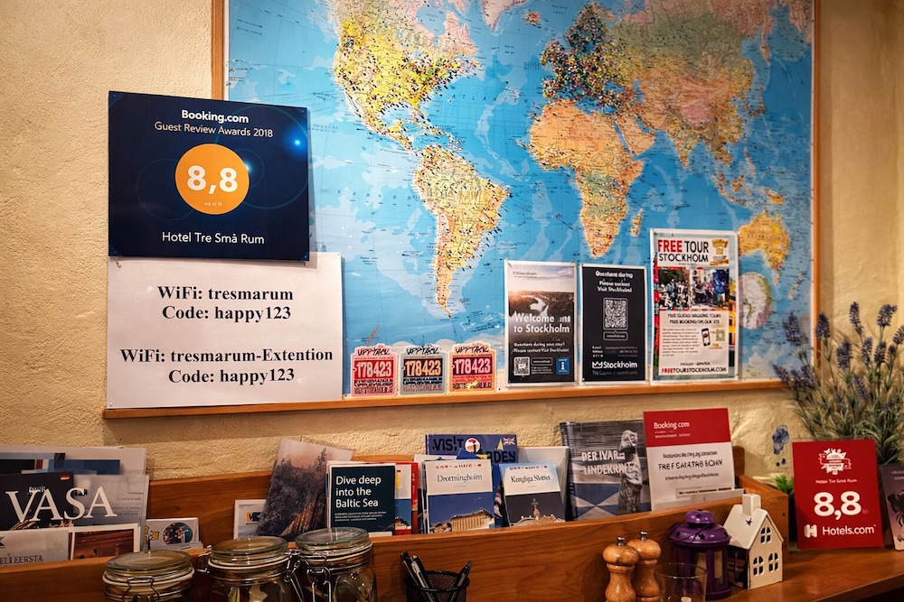 Hotel Tre Små Rum ligger centralt i Stockholm, 5 min med bil från Stockholms slott och 7 min från Vasamuseet. Detta pensionat ligger 4,5 km från Gröna Lund och 8,7 km från Avicii Arena. Känn dig som hemma i ett av de 7 rummen. Gratis wi-fi gör att du kan hålla dig uppkopplad. Badrummen har dusch och hårtorkar. På rummet finns mörkläggningsgardiner och strykutrustning kan fås på begäran. Städning erbjuds dagligen. Avstånd avrundas till närmsta decimal.