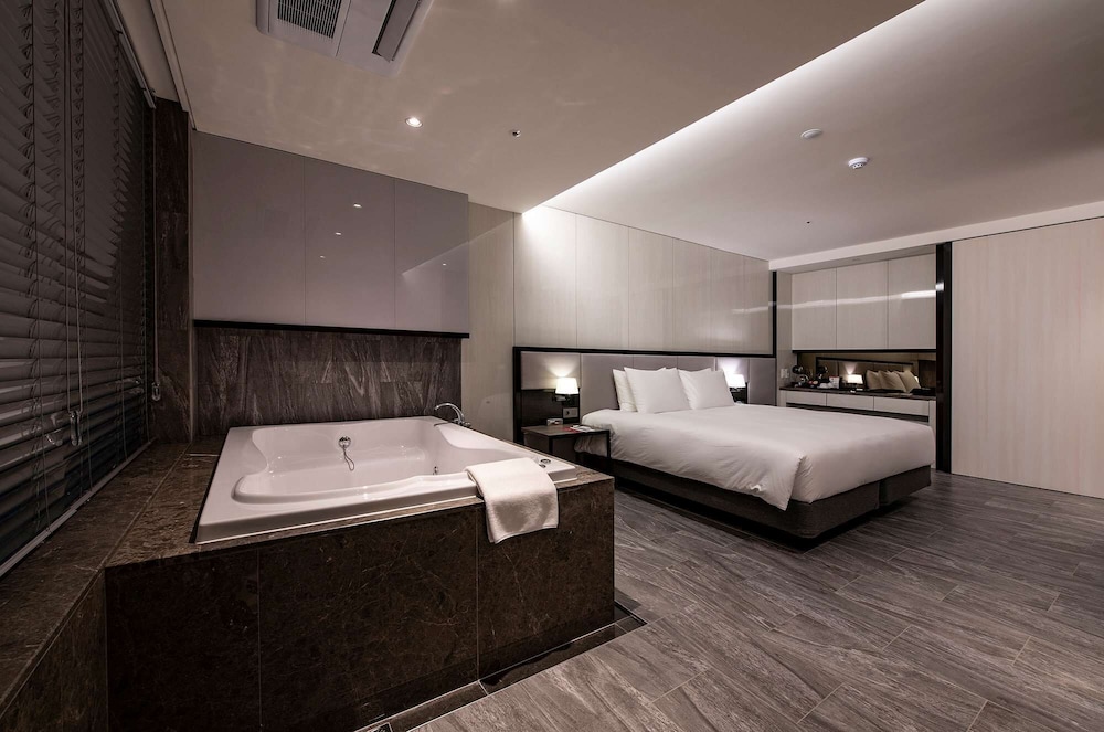 Ramada Suites by Wyndham Geoje ligger i Geoje (i området Irun-myeon), en kvarts promenad från både Geoje Shipbuilding Marine Cultural Center och Geoje fiskebyfolks utställningshall. Detta hotell ligger 4,3 km från Wahyeon Beach och 4,4 km från Geoje Art Center. Känn dig som hemma i ett av de 185 luftkonditionerade rummen med platt-tv. Gratis wi-fi gör att du kan hålla dig uppkopplad. Privat badrum med badkar och dusch, djupa badkar och gratis toalettartiklar. På rummet finns kaffe- och tebryggare och gratis flaskvatten. Städning erbjuds på begäran. Avstånd avrundas till närmsta decimal.