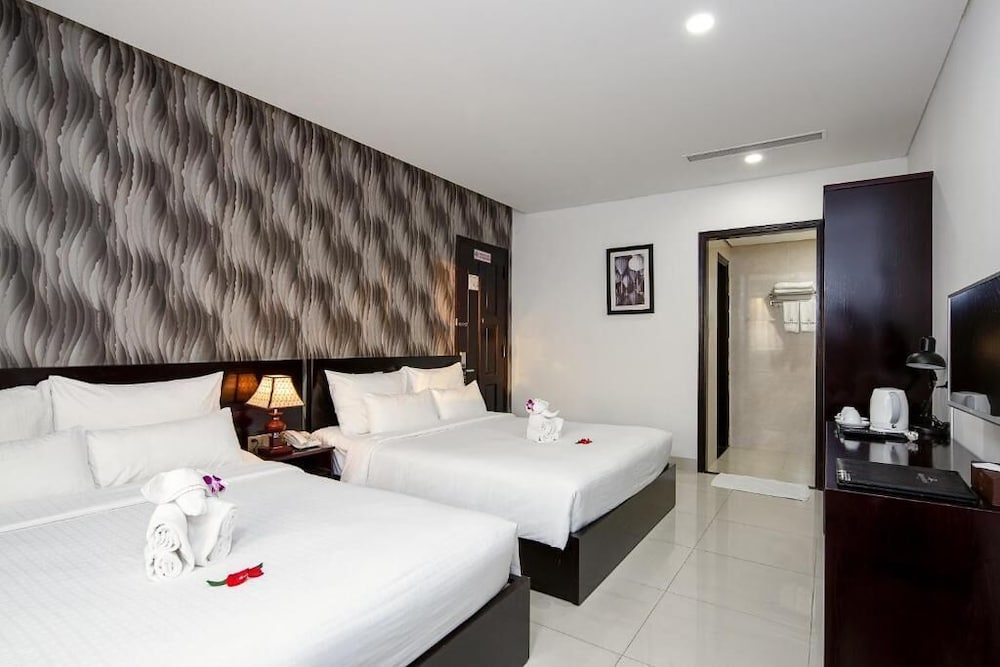 Dung Nam Hotel ligger i Da Nang (i området Sơn Trà), fem minuter med bil från både My Khe-Beach och Han-floden. Detta hotell ligger 2,6 km från Puente del Dragón och 3,3 km från Danangs katedral. Känn dig som hemma i ett av de 30 luftkonditionerade rummen med minibarer och platt-tv. Gratis wi-fi gör att du kan hålla dig uppkopplad, och kabel-tv erbjuder underhållning. Badrum med dusch, regndusch och gratis toalettartiklar. På rummet finns skrivbord och gratis flaskvatten. Städning erbjuds dagligen. Avstånd avrundas till närmsta decimal.