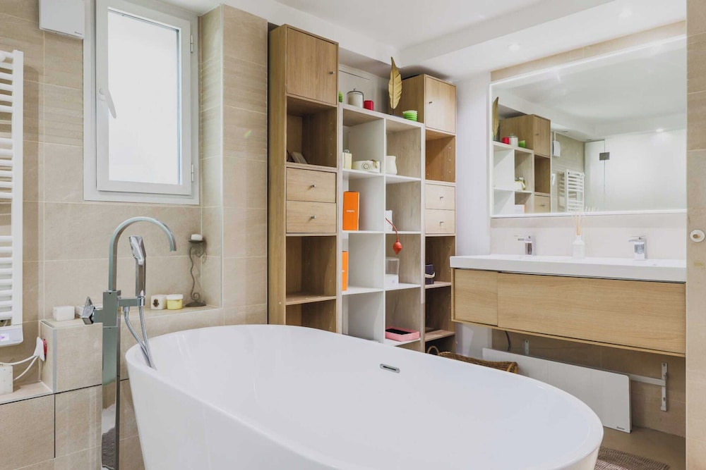 Denna lägenhet ligger centralt i Vincennes, en kvarts bilresa från både Notre-Dame och Stade de France. Denna lägenhet ligger 8,8 km från Luxembourgträdgården och 9,4 km från Opéra Garnier. Känn dig som hemma i den luftkonditionerade lägenheten. Badrummet har badkar och hårtork. Bekvämligheter som ingår är tvättmaskin/torktumlare och strykjärn/strykbräda. Avstånd avrundas till närmsta decimal.