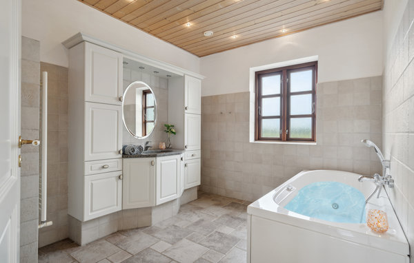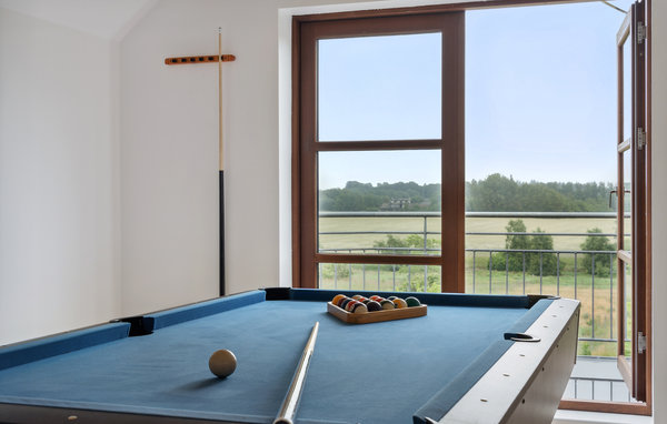 På ett underbart lugnt läge omgivet av skog och fält väntar detta tilltalande och rymliga semesterhus på dig. De ljusa rummen med inredning som fokuserar på det väsentliga inbjuder dig att koppla av. Gör det bekvämt för dig i de olika sittgrupperna, njut av den förtrollande utsikten över naturen vid soffbordet i vinterträdgården eller streama din favoritserie i den mysiga soffan. Biljard och dart inbjuder till roliga familjedueller.