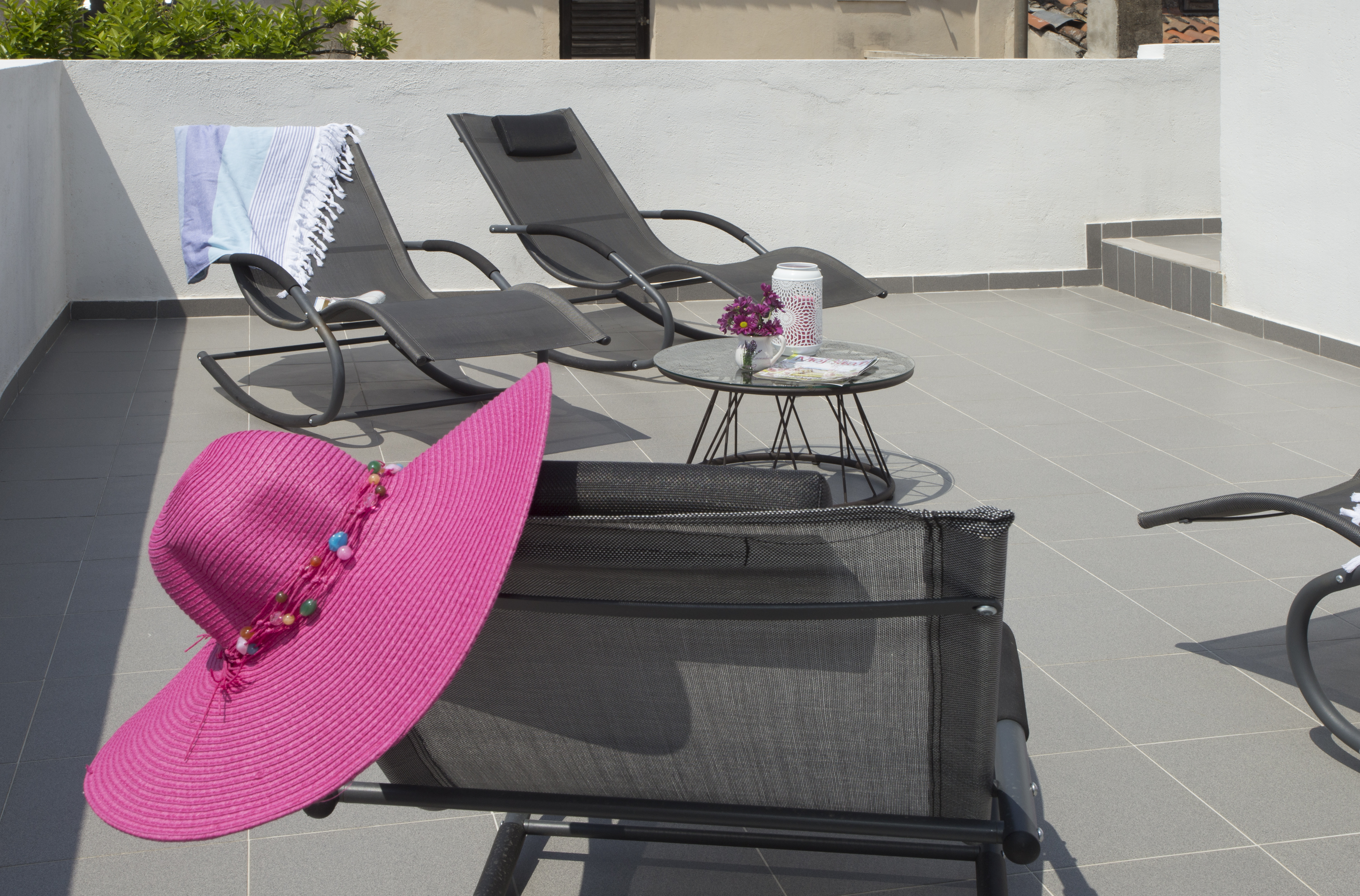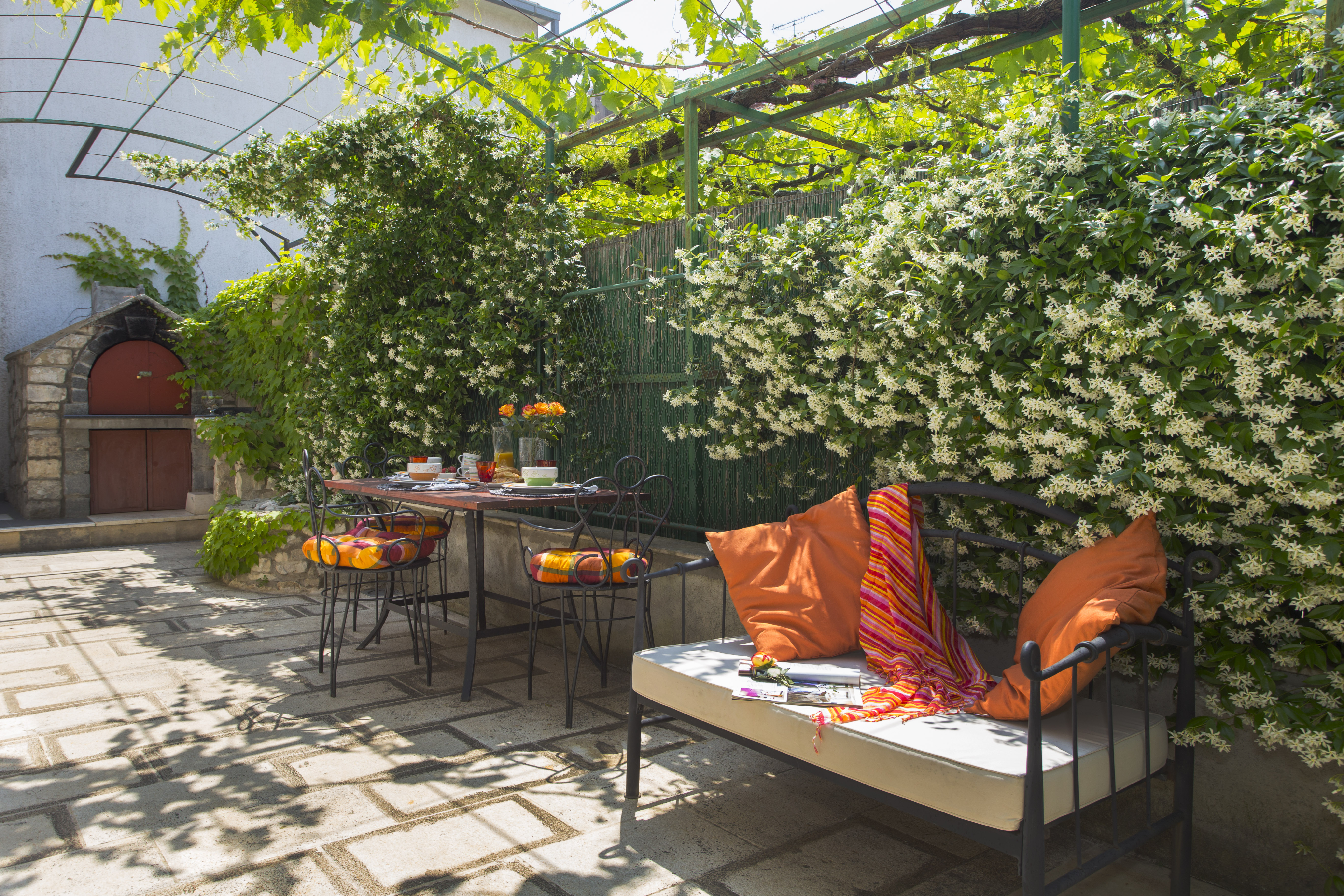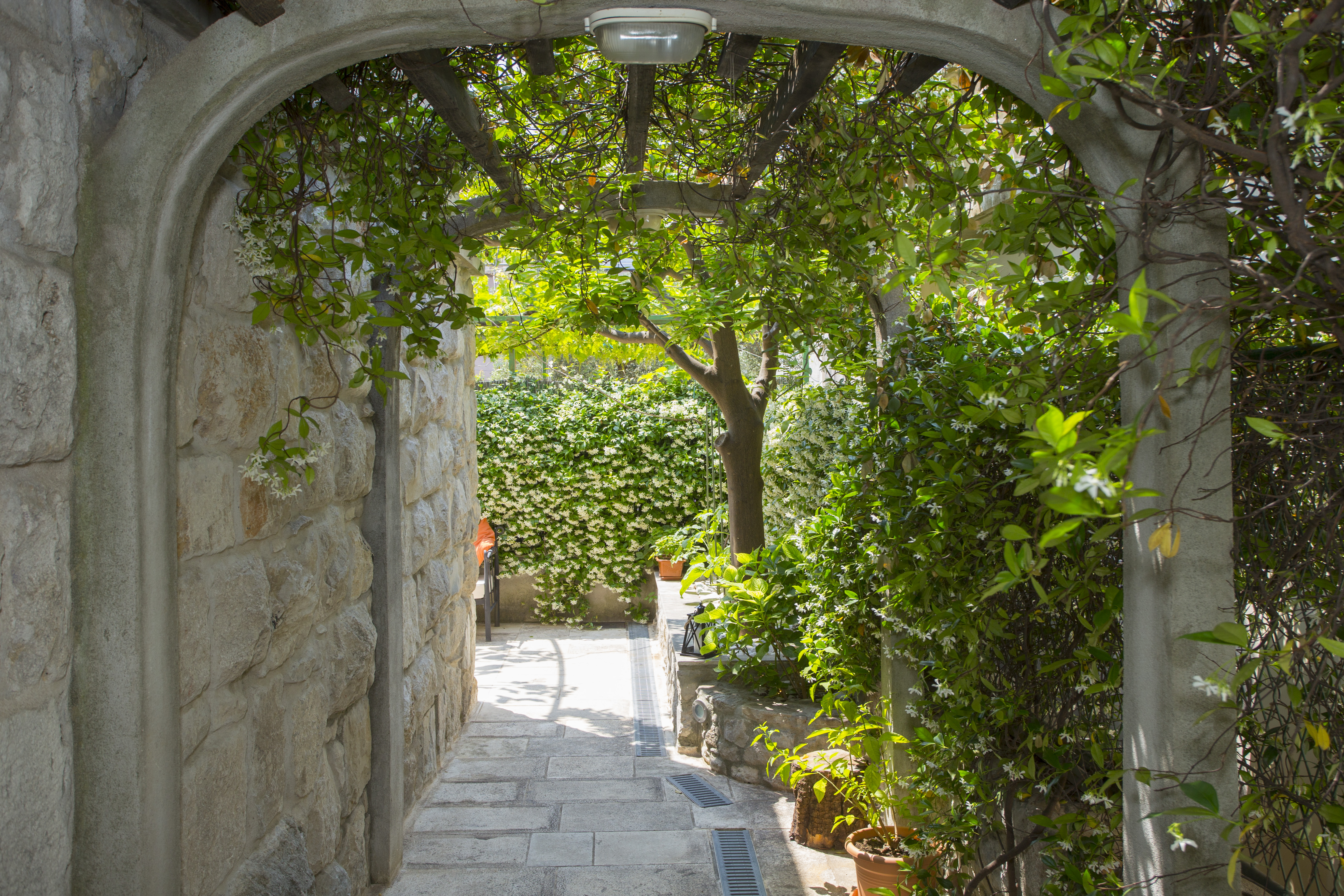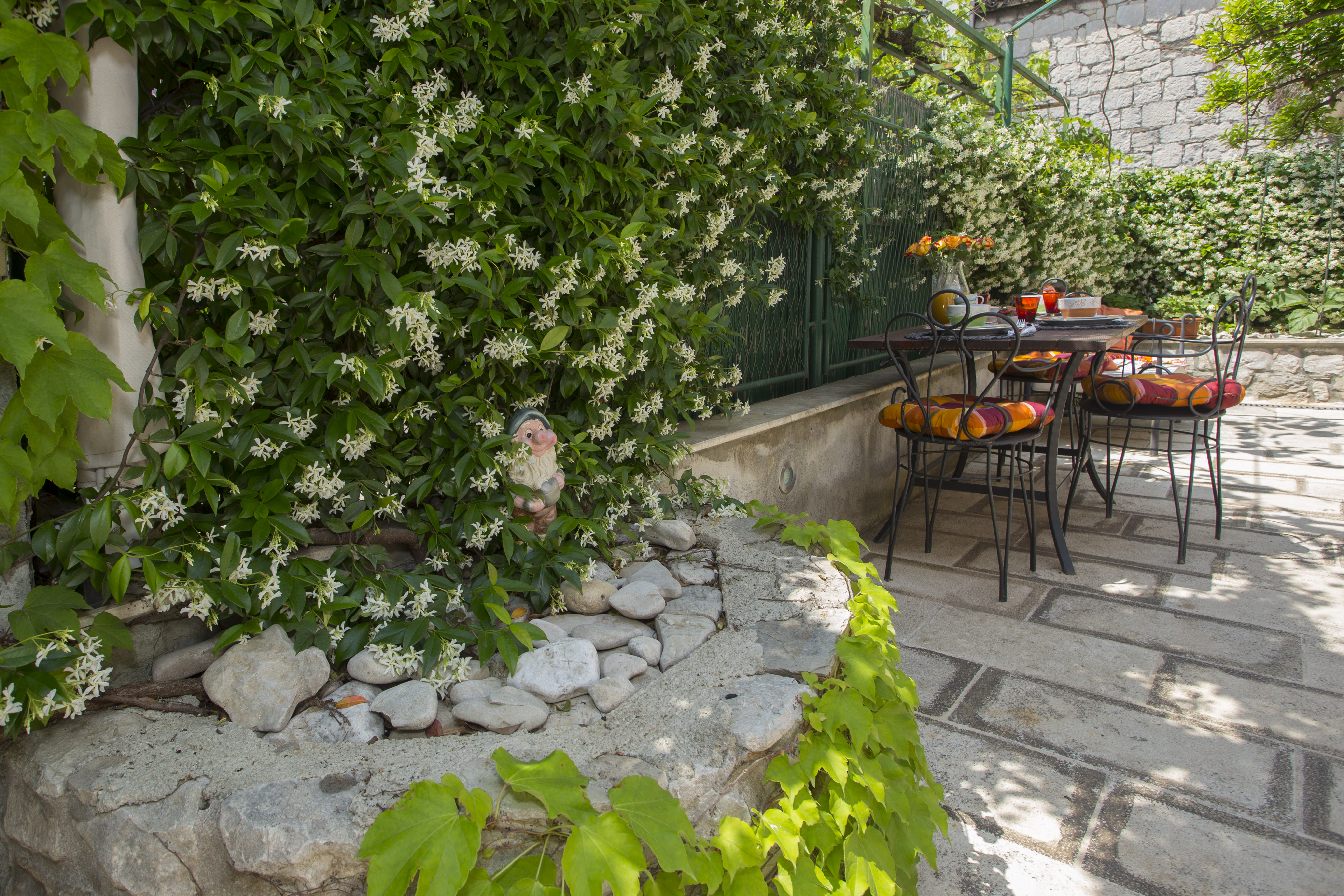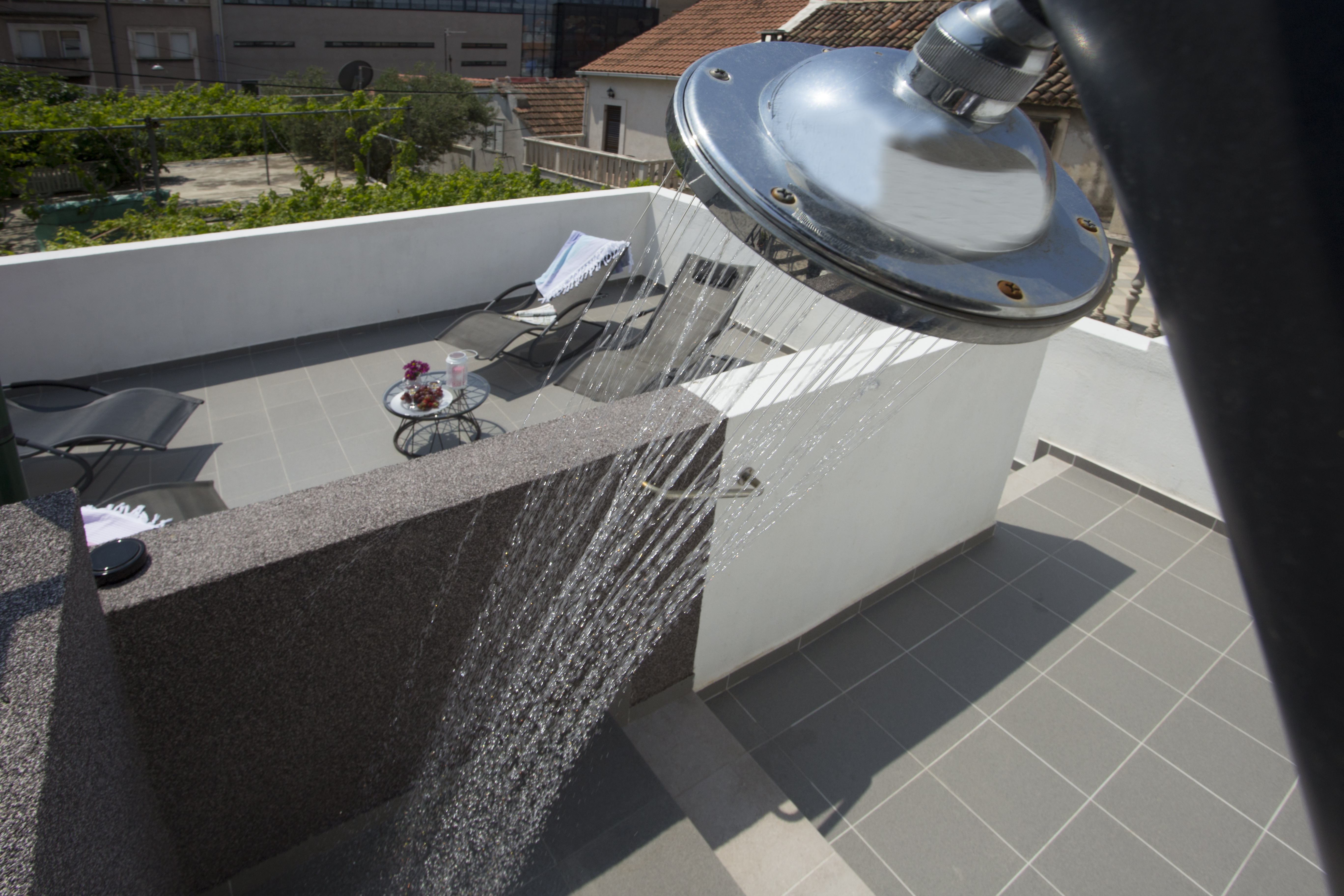 Denna fastighet ligger i hjärtat av stadskärnan, i det berömda, gamla och charmiga området Radunica, bara 300 meter från havet. Sandstranden Bacvice Beach ligger bara 600 meter bort, antika Salona ligger 6 km bort och Splits flygplats ligger 25 km bort. Fastigheten är ett traditionellt stenhus och har en terrass för en avkopplande semester. Det erbjuder också en matplats, ett fullt utrustat modernt kök med olika hushållsapparater och ett badrum med badkar. Rummen har ett badrum och alla toalettartiklar. Framför lägenheterna finns en stor terrass med bord, stolar och soffa för avkoppling och chill out under apelsinträdet och jasminen.