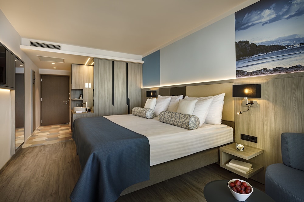 Valamar Carolina Hotel & Villas ligger i Rab på stranden, ett stenkast från Kvarnerviken och 3 minuter med bil från Sta Euphemias fransiskanska kloster.  Detta hotell vid stranden ligger 2,6 km från Kandalora-stranden och 3,2 km från Frkanjs strand. Känn dig som hemma i ett av de 142 rummen med minibarer och LCD-tv. Gratis wi-fi gör att du kan hålla dig uppkopplad, och satellit-tv erbjuder underhållning. Privat badrum med gratis toalettartiklar och hårtorkar. På rummet finns värdeförvaringsskåp och skrivbord. Städning erbjuds på begäran. Avstånd avrundas till närmsta decimal.