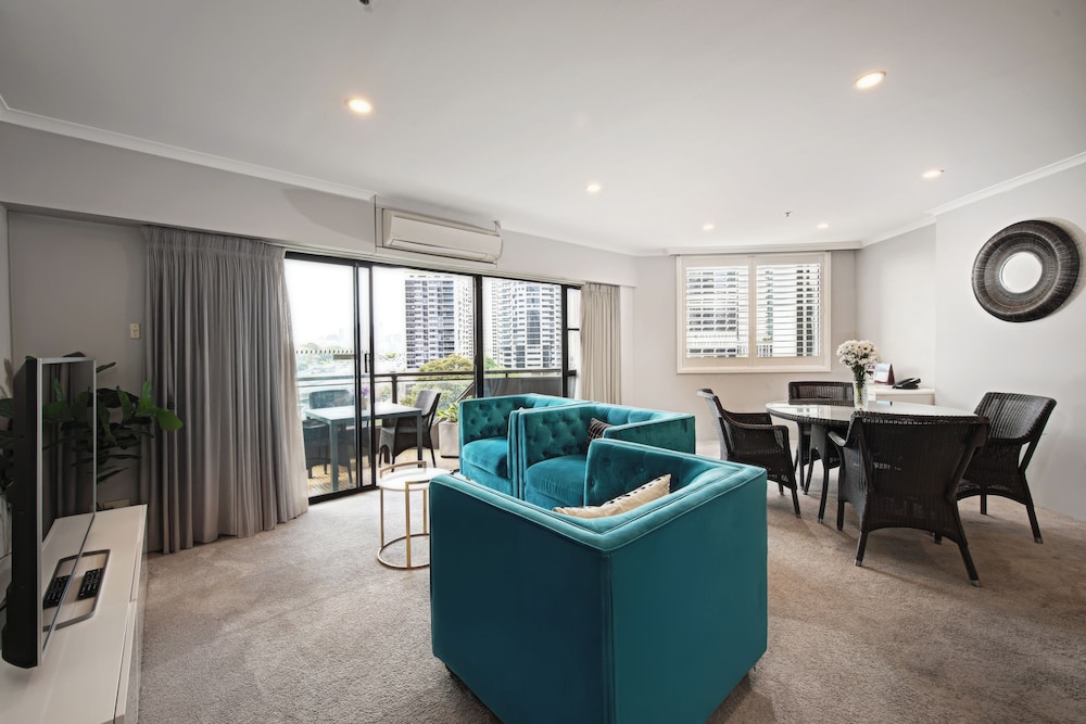 The York by Swiss-Belhotel International ligger centralt i Sydney, en tio minuters promenad från både Pitt Street Mall och Martin Place. Detta lägenhetshotell i lyxstil ligger 1 km från Circular Quay och 0,8 km från SEA LIFE Sydney Aquarium. Känn dig som hemma i ett av de 98 individuellt inredda rummen som har kök med kylskåp och spishäll. Gratis wi-fi ser till att du kan hålla dig uppkopplad, och en 32-tums platt-tv med satellitkanaler erbjuder all underhållning du behöver. På rummet finns laptopanpassade värdeförvaringsskåp och skrivbord. Städning erbjuds dagligen. Avstånd avrundas till närmsta decimal.