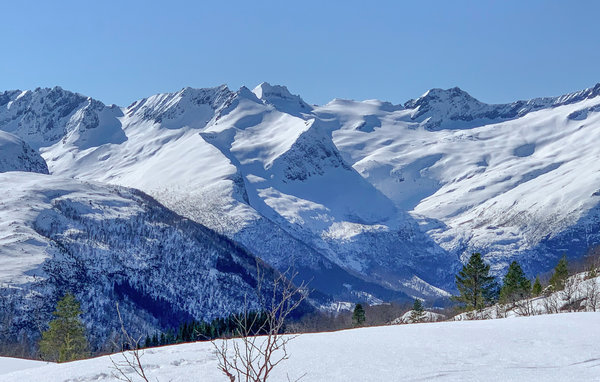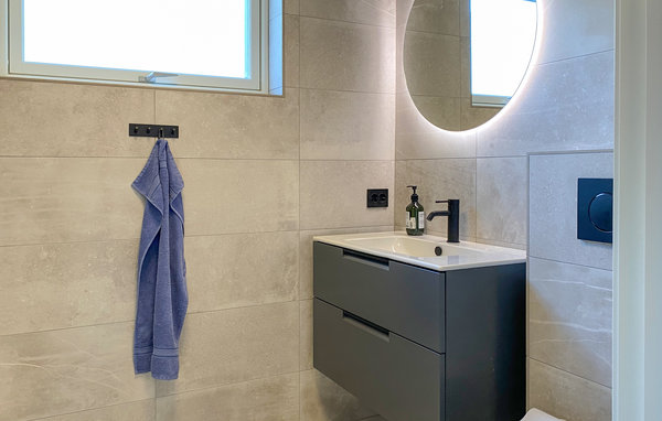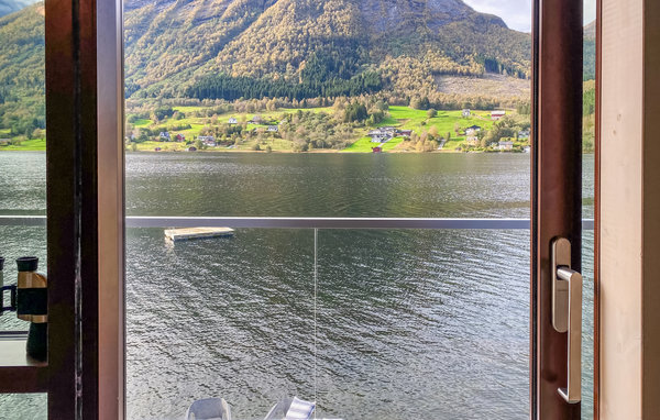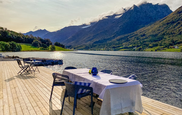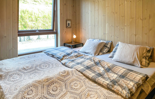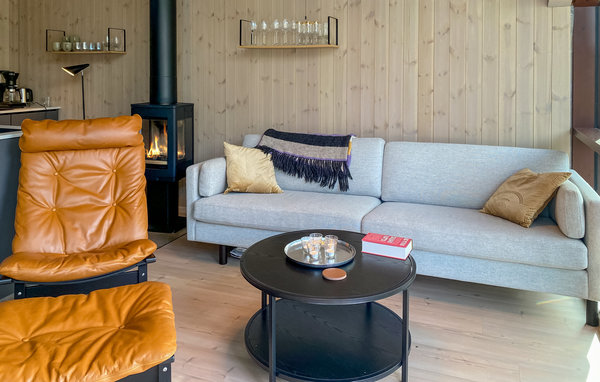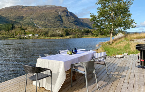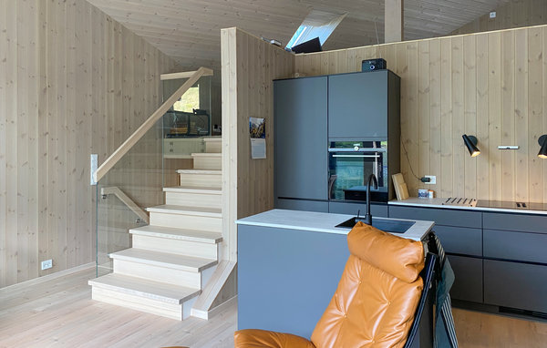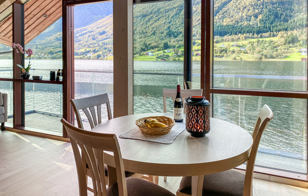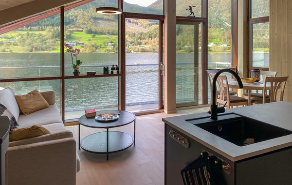 Detta moderna semesterhus, med ett förtrollande läge direkt vid fjorden, är ett paradis för naturälskare. Den höga takhöjden och fönstren från golv till tak, som släpper in mer dagsljus och för in naturen direkt i vardagsrummet, förmedlar en luftig känsla av rymd, lugn och värme och suddar ut gränsen mellan inne och ute på det vackraste sättet. Det moderna köket inbjuder till matlagning med utsikt, medan de som inte gillar att laga mat kan slappa i sofforna bredvid den sprakande eldstaden. Ha roliga spelkvällar vid matbordet och planera dina utflykter. Njut av frukost eller middag med utsikt över smaragdgrönt fjordvatten och sagolika berg, och andas in den friska luften på träterrassen eller balkongen. Gå ut genom dörren, över terrassen och hoppa i den glittrande fjorden.