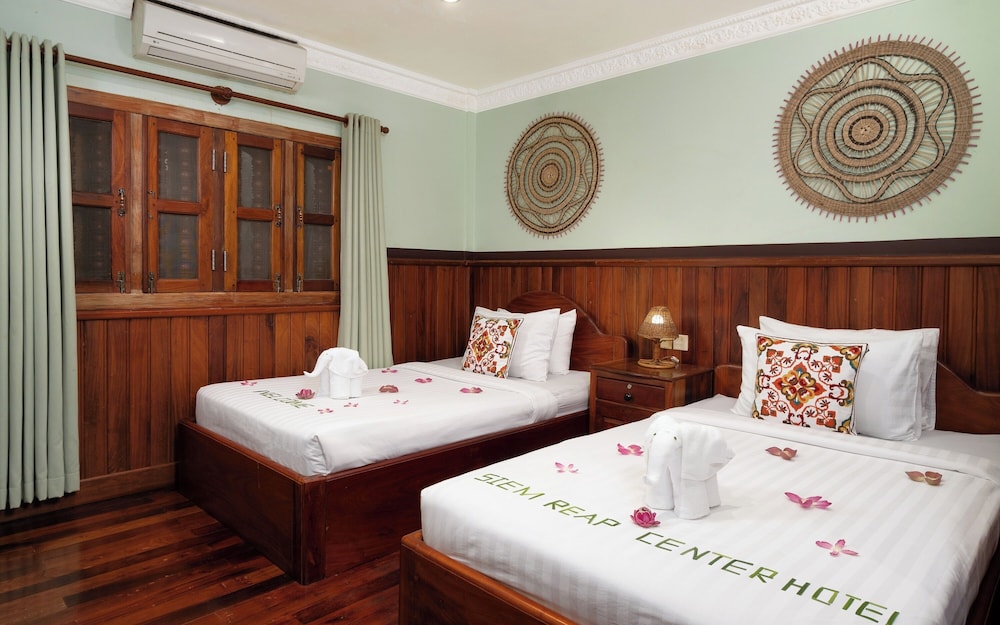 Siem Reap Center Hotel ligger centralt i Siem Reap, 2 min med bil från Pub Street och 7 min från Angkor Wat. Detta hotell i lyxstil ligger 0,2 km från Lucky Mall och 0,5 km från Charles de Gaulle Boulevard. Känn dig som hemma i ett av de 34 luftkonditionerade rummen med minibarer. Gratis wi-fi gör att du kan hålla dig uppkopplad. Privat badrum med badkar eller dusch, gratis toalettartiklar och badrockar. På rummet finns värdeförvaringsskåp och skrivbord. Städning erbjuds på begäran. Avstånd avrundas till närmsta decimal.