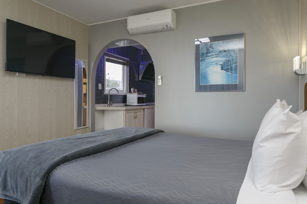 Taupo Thermal Motel & Spa - Adults Only ligger i Taupō (i området Taupō Central), fem minuters bilfärd från Waipahihi Botanical Gardens och Maori Carvings.  Detta motell vid stranden ligger 2,3 km från Taupō Museum and Art Gallery och 2,5 km från Taupō Marina and Boat Ramp. Känn dig som hemma i ett av de 17 luftkonditionerade rummen med kök. Gratis wi-fi gör att du kan hålla dig uppkopplad, och en platt-tv med digitalkanaler erbjuder all underhållning du behöver. På rummet finns mikrovågsugnar och kaffe- och tebryggare. Städning erbjuds dagligen. Avstånd avrundas till närmsta decimal.