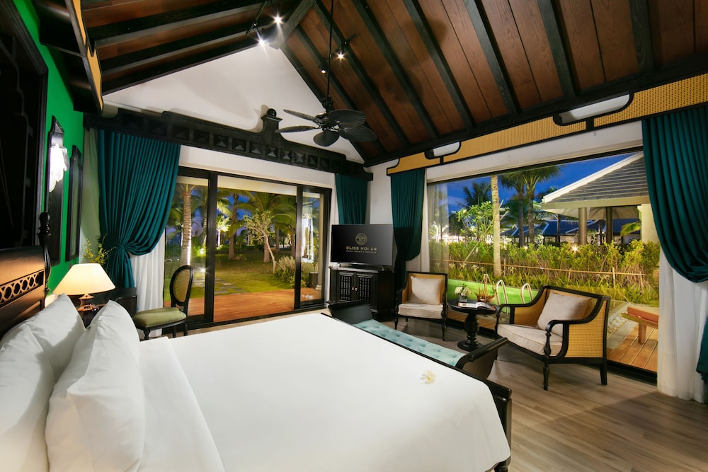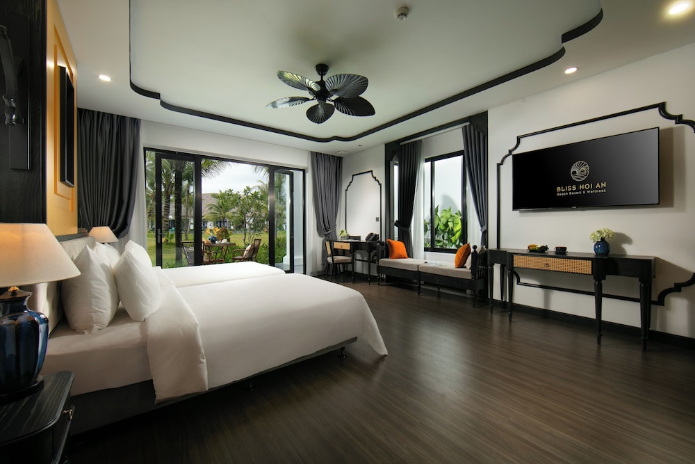 Bliss Hoi An Beach Resort & Wellness ligger i Thăng Bình och placerar dig 4 km från VinWonders Nam Hoi An och 21 km från Centrala marknaden Hội An. Denna resort vid stranden ligger 21 km från Quan Cong-templet och 21,6 km från Den Kantones-kinesiska församlingens samlingshall. Skäm bort dig och bo i ett av 135 individuellt inredda rum med privata bubbelpooler inomhus. Sängen har bäddmadrass, duntäcken och sängtillbehör av högsta kvalitet. Rummen har privata balkonger/terrasser. Gratis wi-fi gör att du kan hålla dig uppkopplad, och kabel-tv erbjuder underhållning. Avstånd avrundas till närmsta decimal.