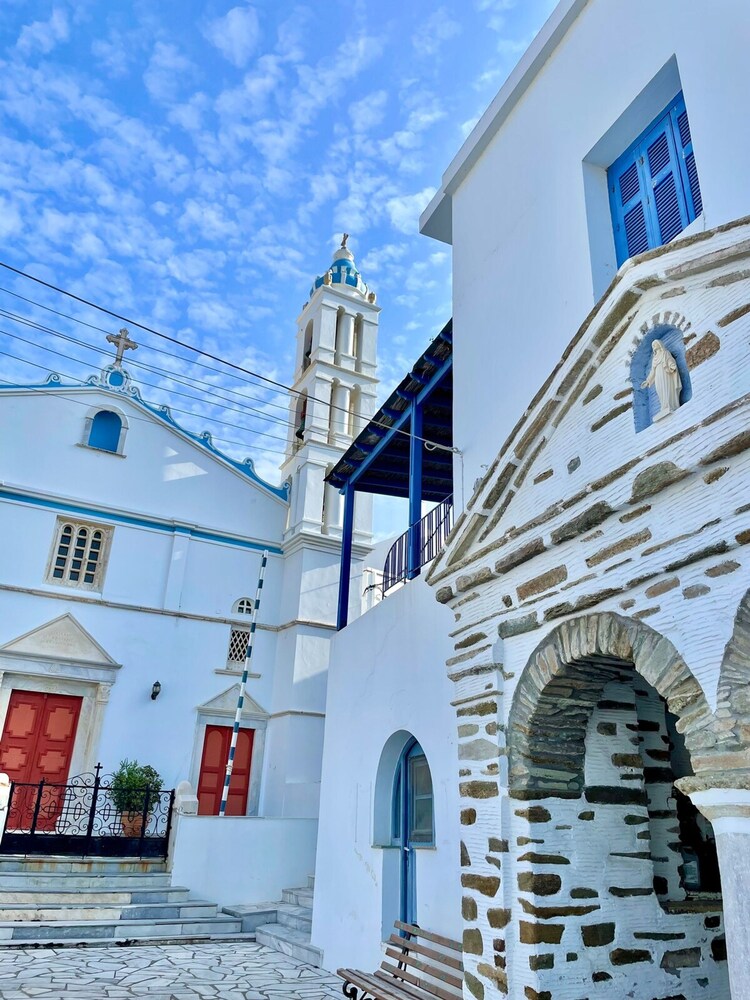 I Tinos hittar du denna villa en tio minuters bilfärd från Tinos arkeologiska museum och Panagia Evangelistria kyrka. Denna villa ligger 25,6 km från Mykonos nya hamn och 27,9 km från Mykonos gamla hamn. Känn dig som hemma i villan. Avstånd avrundas till närmsta decimal.