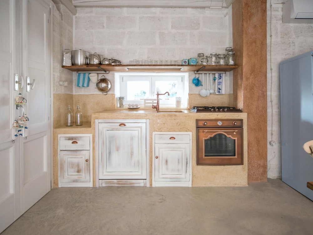 Denna villa ligger i Racale, en fem minuters promenad från både Torre Suda och Joniska havet. Denna villa ligger 0,8 km från San Marco Square och 1,4 km från Spiaggia Marina Di Mancarversa. Skäm bort dig själv och bo i den här individuellt möblerade villan, som har eldstad. I köket kan du enkelt tillaga dina måltider. Avstånd avrundas till närmsta decimal.