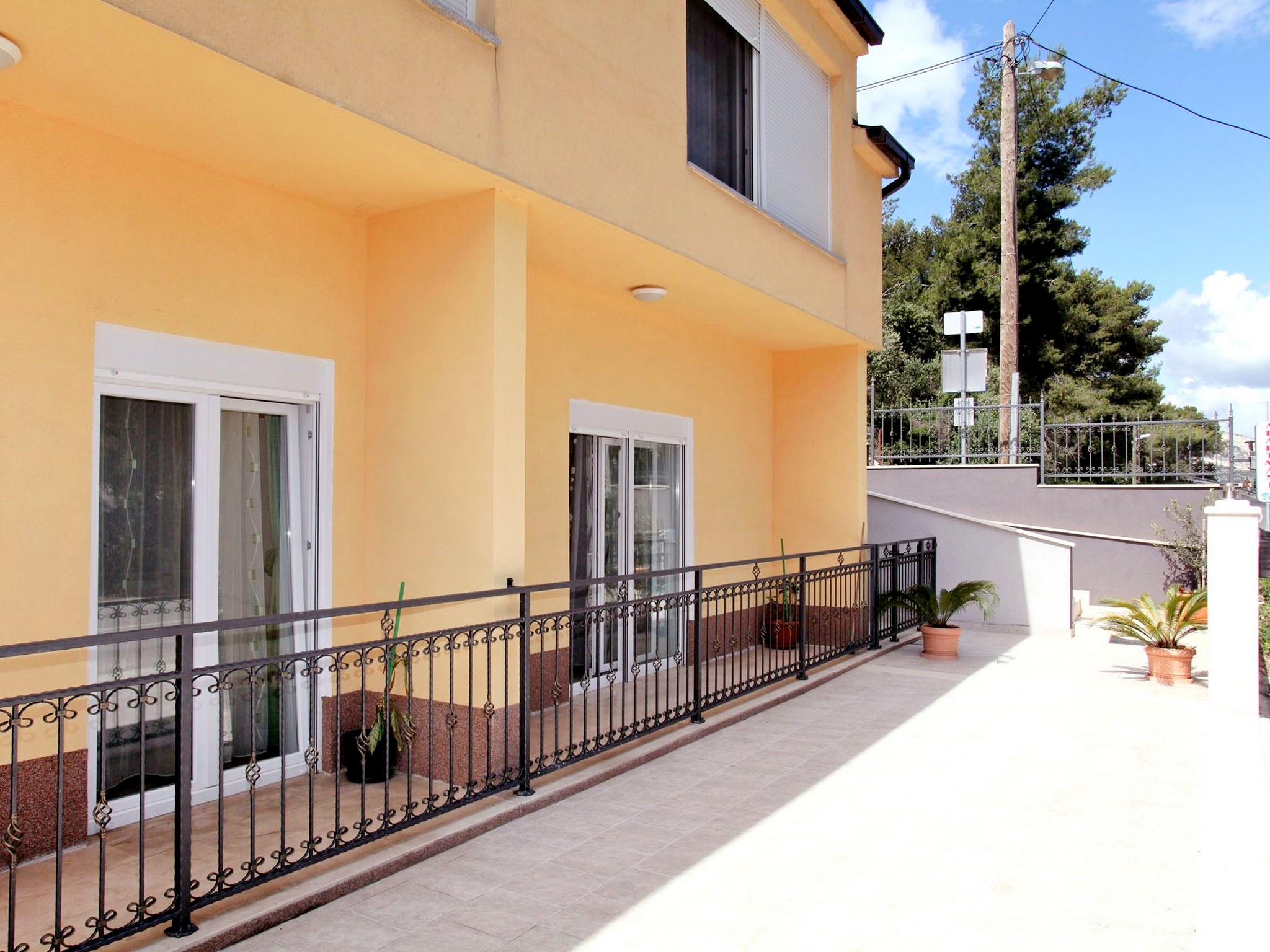 Detta lägenhetskomplex har ett lugnt läge i Trogir, på ön iovo, bara ett stenkast från stranden och en kort bilresa från affärer, restauranger, gallerier och kollektivtrafik. Komplexet erbjuder tre lägenheter, en för två gäster och två standardlägenheter. Medan lägenheten för två personer och en standardlägenhet delar våning och terrass, är de separata enheter. Gästerna har tillgång till parkering på plats. Alla lägenheter har kök, sovrum med dubbelsängar, central luftkonditionering, badrum med dusch eller badkar, satellit-TV och en privat balkong eller terrass. Sängkläder och handdukar tillhandahålls kostnadsfritt. Eftersom det inte finns någon reception dygnet runt, ombeds gästerna vänligen att ange sin beräknade ankomsttid minst 48 timmar i förväg.