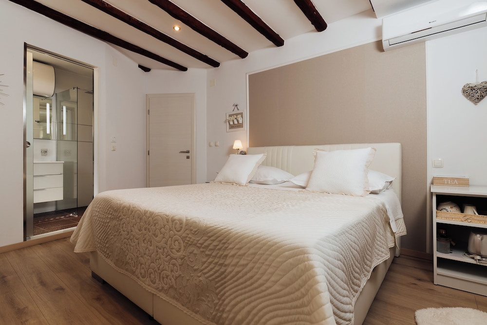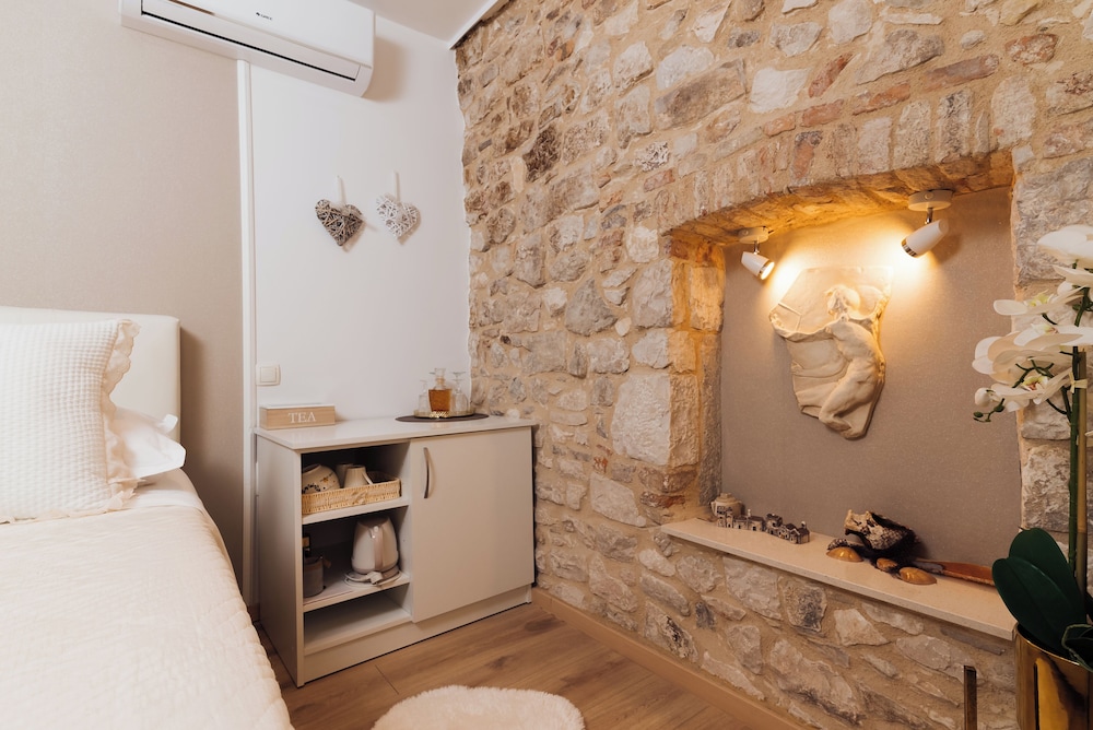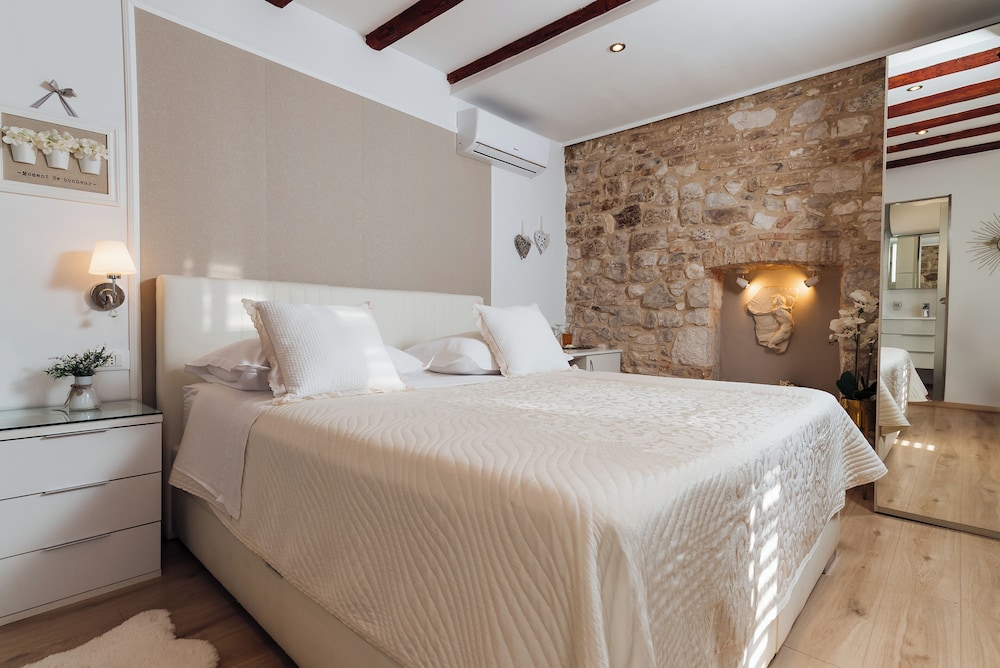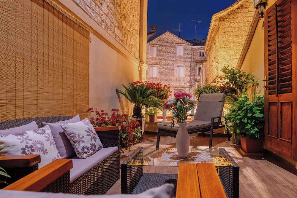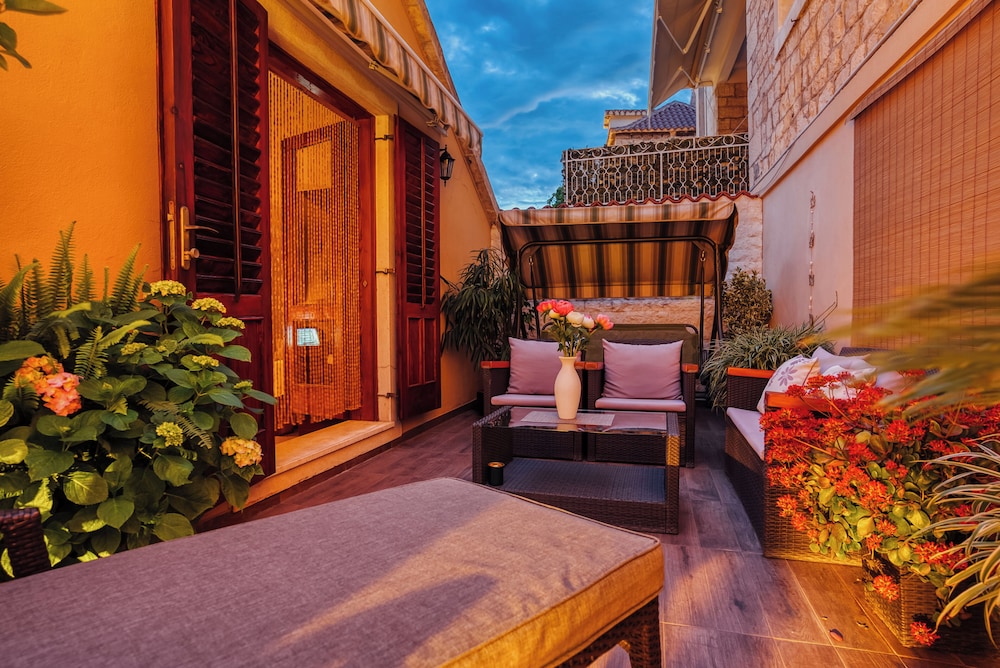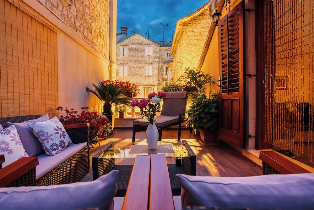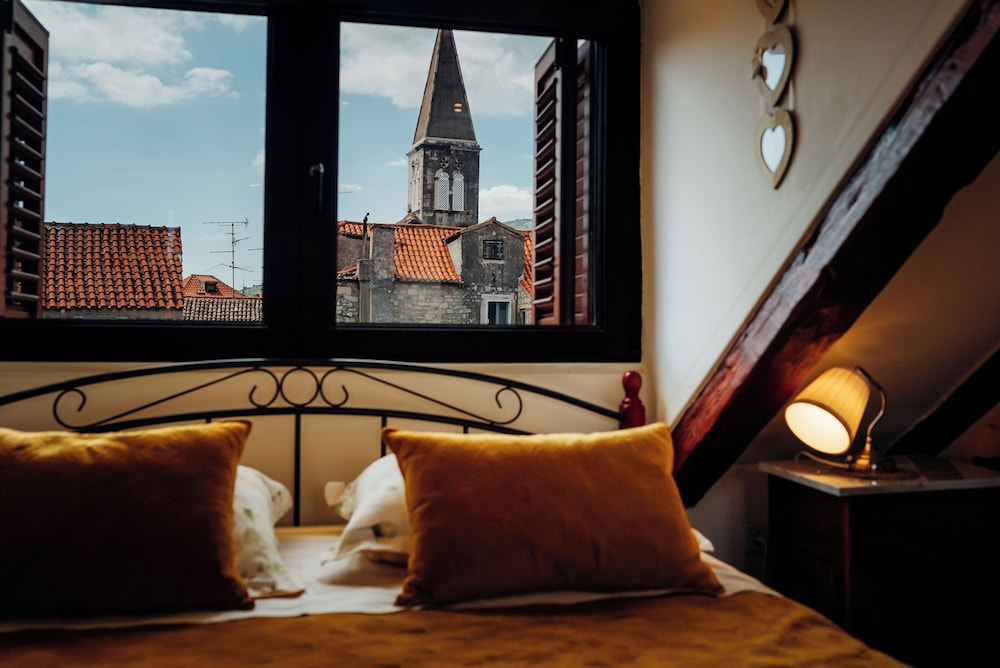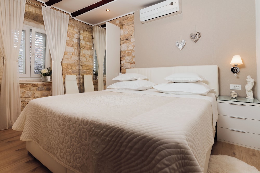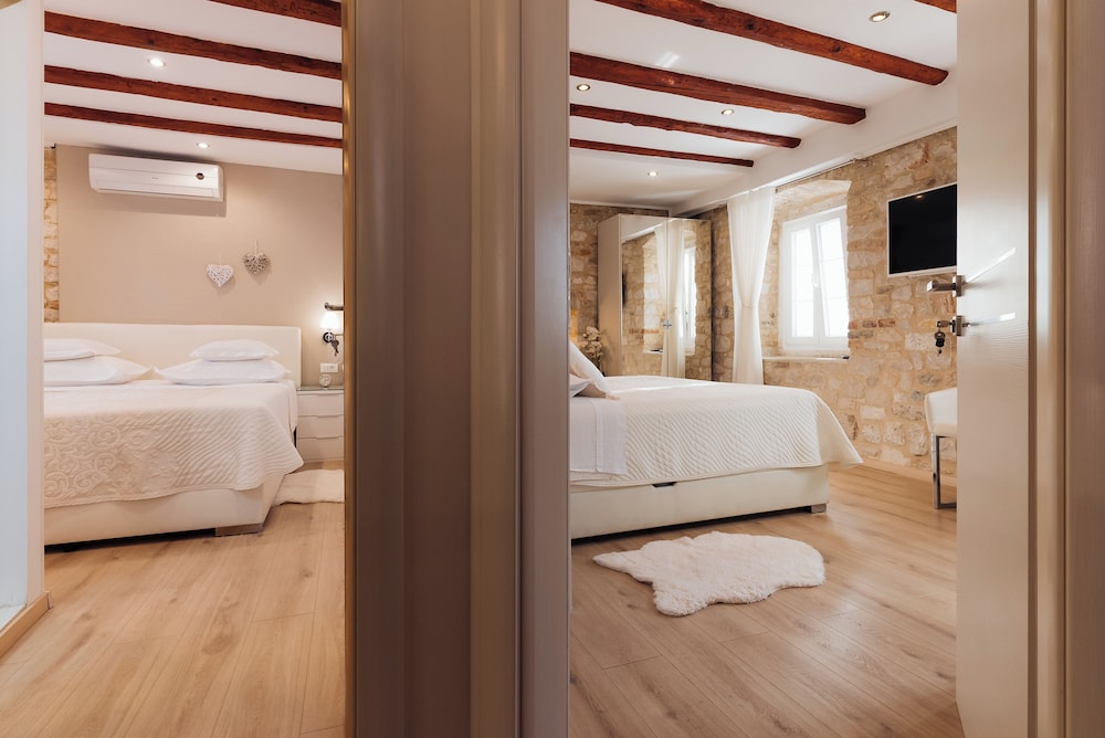 När du bor på Villa Trogir Stars i Trogir (i området Trogirs gamla stadskärna), är du en kort promenad från Cipikos palats och Trogirs torg. Denna villa ligger 0,1 km från St. Lovros katedral och 0,1 km från Radovans portal. Känn dig som hemma i ett av de 5 rummen med smart-tv. Sängen har memory foam-madrass och sängtillbehör av högsta kvalitet. Gratis wi-fi gör att du kan hålla dig uppkopplad, och digital-tv erbjuder underhållning. Privat badrum med gratis toalettartiklar och hårtorkar. Avstånd avrundas till närmsta decimal.
