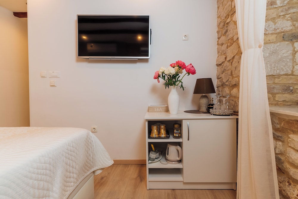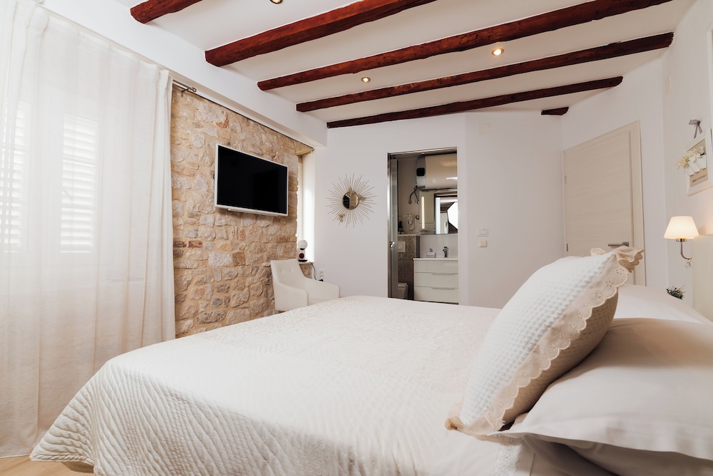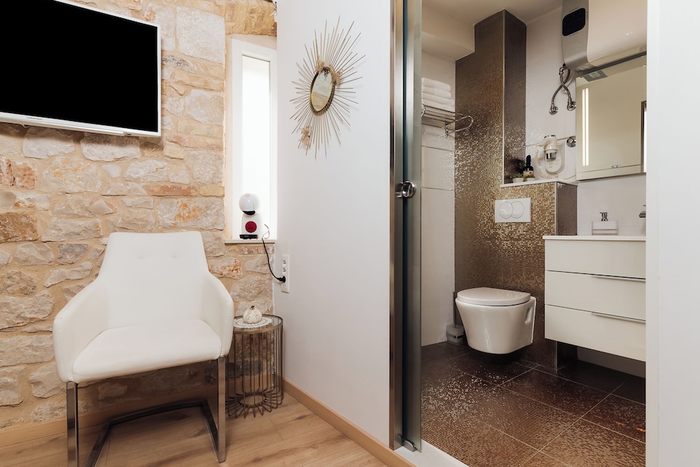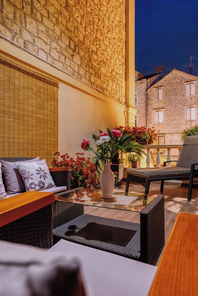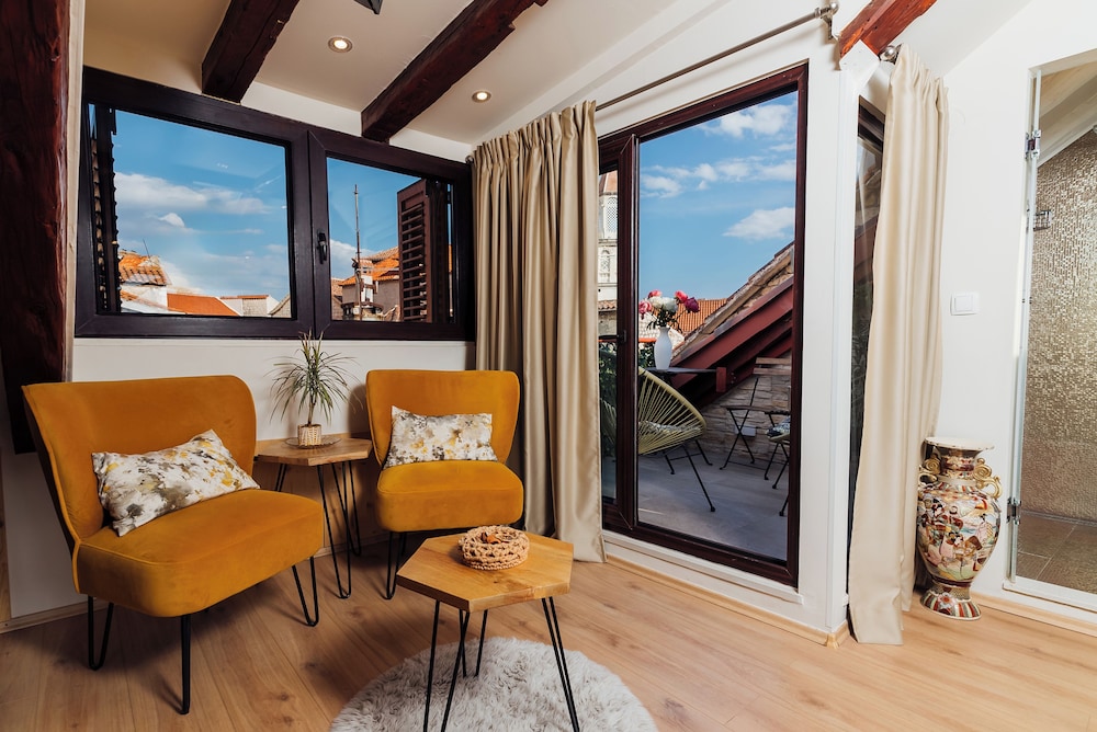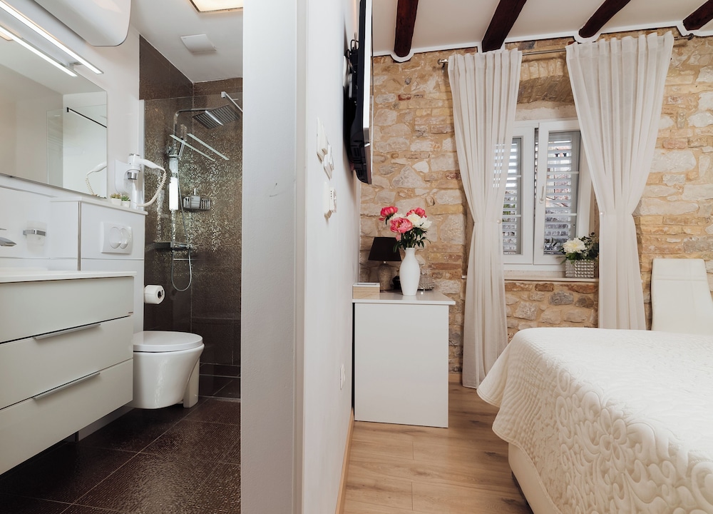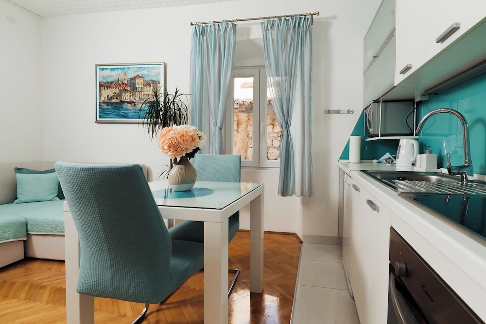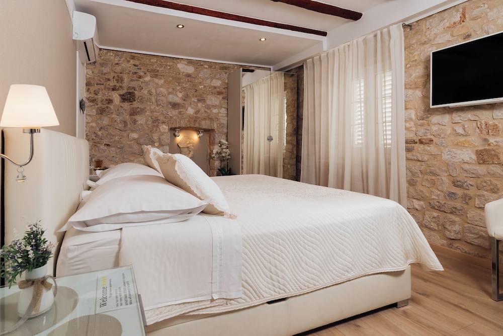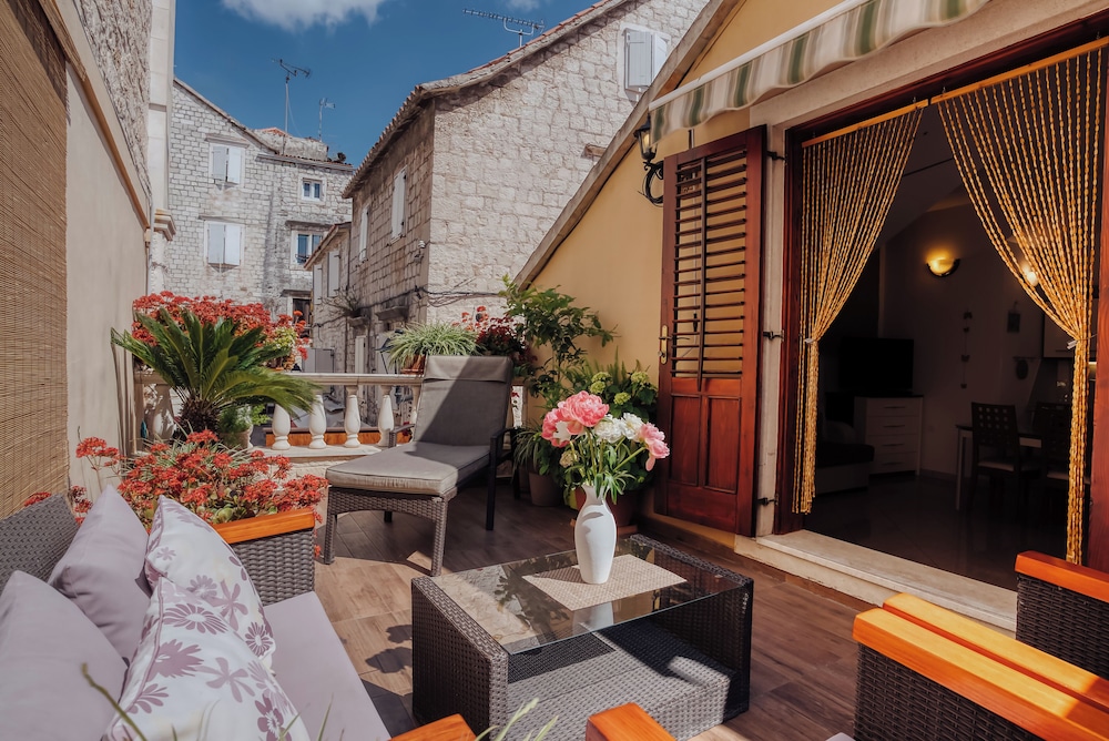 När du bor på Villa Trogir Stars i Trogir (i området Trogirs gamla stadskärna), är du en kort promenad från Cipikos palats och Trogirs torg. Denna villa ligger 0,1 km från St. Lovros katedral och 0,1 km från Radovans portal. Känn dig som hemma i ett av de 5 rummen med smart-tv. Sängen har memory foam-madrass och sängtillbehör av högsta kvalitet. Gratis wi-fi gör att du kan hålla dig uppkopplad, och digital-tv erbjuder underhållning. Privat badrum med gratis toalettartiklar och hårtorkar. Avstånd avrundas till närmsta decimal.