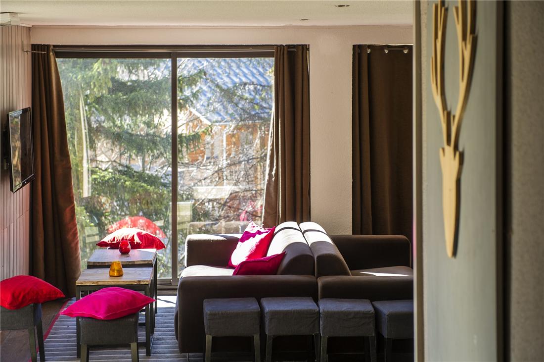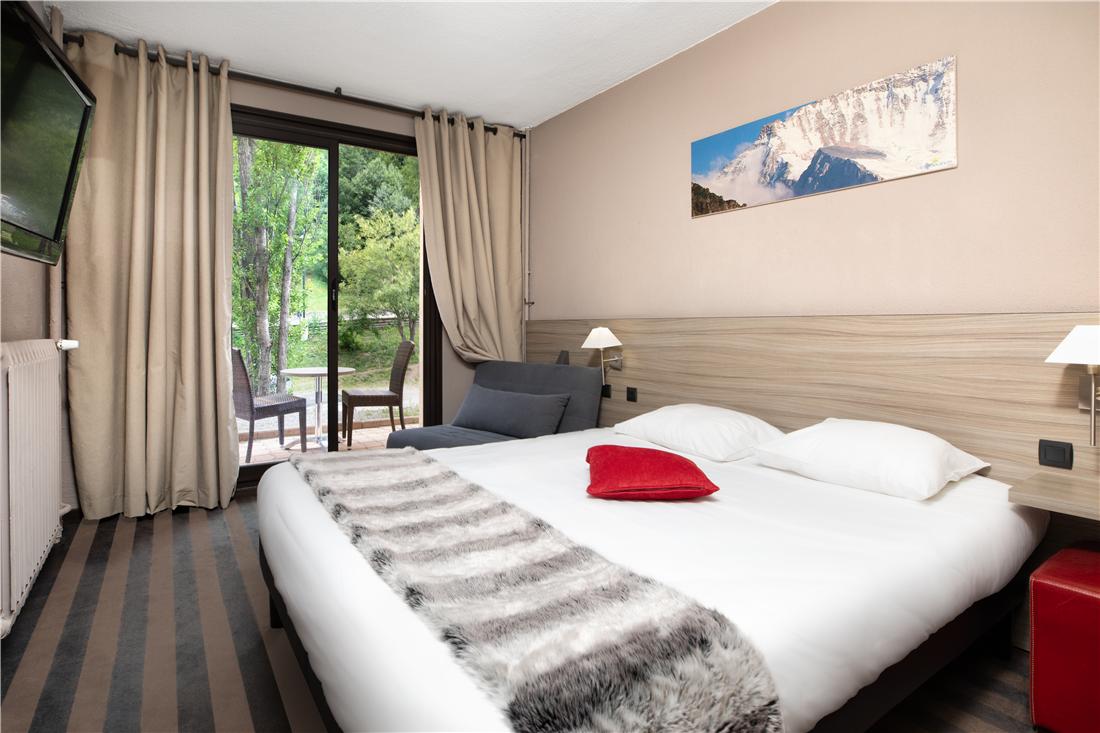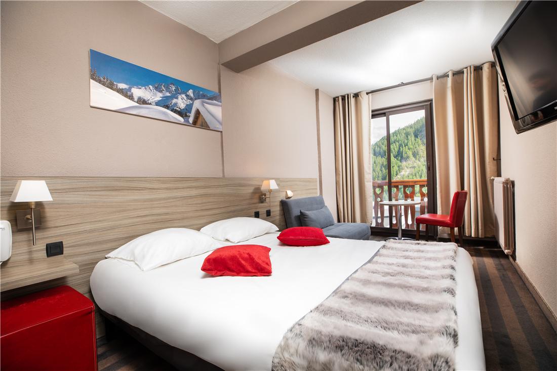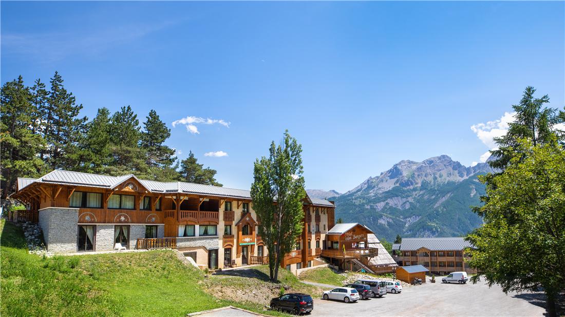 Hotellet ligger 250 meter från resortens centrum och 300 meter från skidliftarna, det finns även en buss som snabbt tar dig dit om du inte vill gå. Du har även närhet till alla aktiviteter som erbjuds under sommarhalvåret. Personalen är vänlig och finns på plats för att hjälpa dig med information och annat under hela din vistelse. Rummen är modernt inredda och har bekvämligheter som Sat-TV och Wi-Fi. För dig som vill koppla av efter en dag i backen eller ute i naturen kan du njuta av inomhuspoolen med dess vackra utsikt över bergen, bastun eller en drink på terrassen. Både under vintern och sommaren finns möjlighet att boka till All Inclusive-formeln "So'Inclusive" där det ingår frukost, lunchpaket, middag, snacks och diverse drycker*.