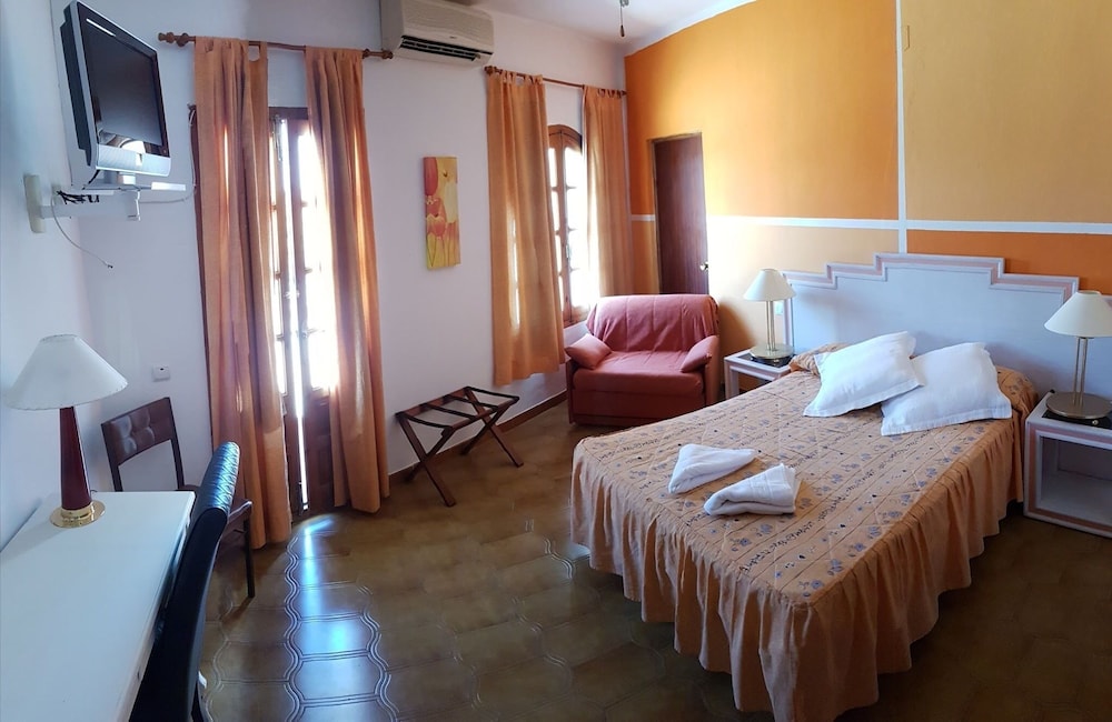I Vejer de la Frontera hittar du Hostal Los Arcos en fem minuters bilfärd från Annie B's Spanska Kök och Fundación NMAC.  Detta hostal ligger 15,8 km från Playa El Palmar och 3,5 km från Arco de la Puerta Cerrada. Känn dig som hemma i ett av de 14 luftkonditionerade rummen med platt-tv. Gratis wi-fi gör att du kan hålla dig uppkopplad, och kabel-tv erbjuder underhållning. Badrummen har badkar och gratis toalettartiklar. Avstånd avrundas till närmsta decimal.