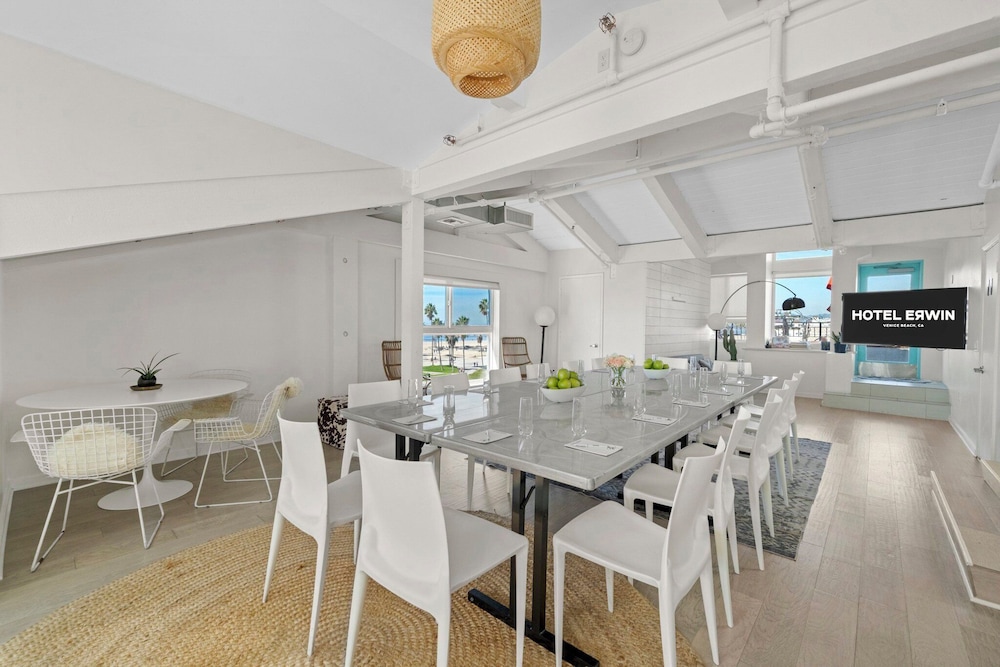 När du bor på Hotel Erwin Venice Beach i Venedig, kommer du att vara på stranden, en kort promenad från Venice Beach Boardwalk och 3 min promenad från Venice Beach. Detta hotell vid stranden ligger 0,6 km från Abbot Kinney Boulevard och 1,7 km från Santa Monica Beach (strand). Känn dig som hemma i ett av de 120 luftkonditionerade rummen med iPod-dockningsstationer och platt-tv. Sängen har bäddmadrass, duntäcken och sängtillbehör av högsta kvalitet. Rummen har privata balkonger. Gratis wi-fi gör att du kan hålla dig uppkopplad, och kabel-tv erbjuder underhållning. Privat badrum med dusch, gratis toalettartiklar och hårtorkar. Avstånd avrundas till närmsta decimal.