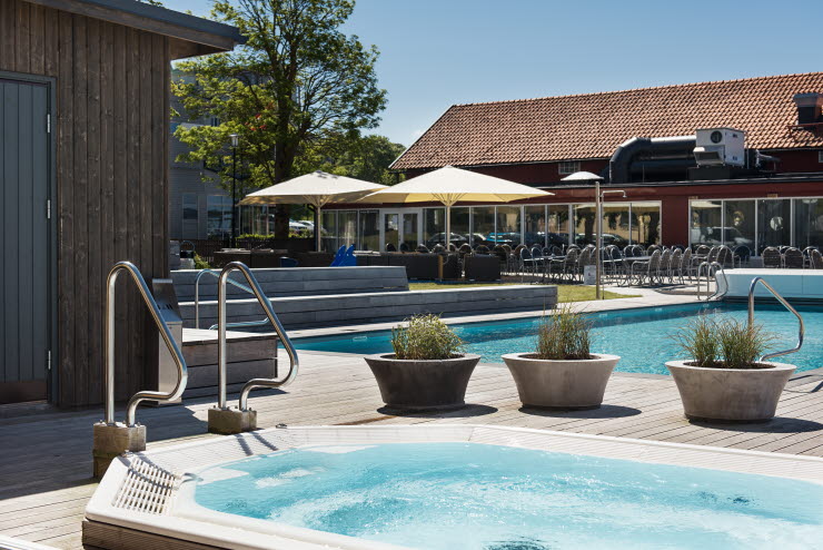 Du har fri tillgång till gymmet, poolerna och bastu/relax. Den stora utomhuspoolen är öppen juni till augusti och den varma bubbelpoolen under bar himmel är öppen hela året. Boka gärna massage, behandlingar och yoga hos Carma SPA som har mottagning på hotellområdet. I receptionen kan du boka båtbiljetter och hyra cykel, och för barnen finns en lekplats.