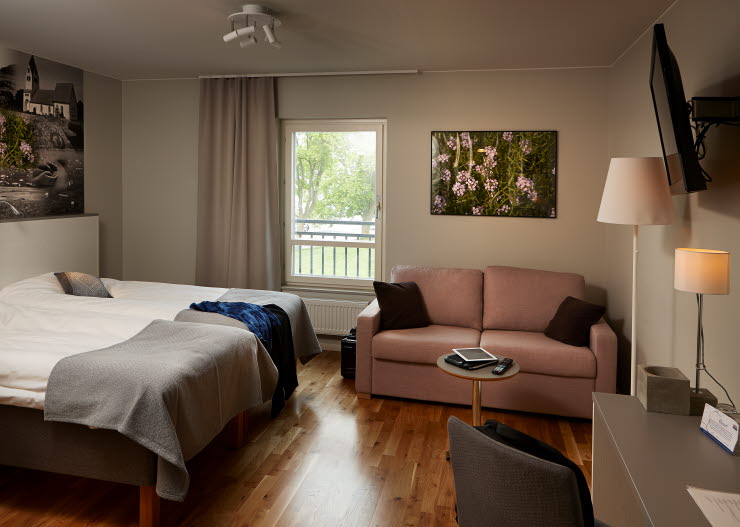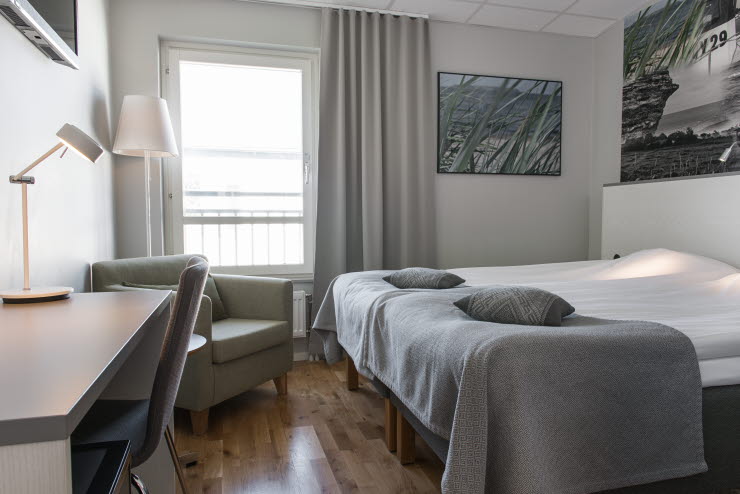 Från hotellet promenerar du på bara 5-10 minuter till Visby innerstad. I den medeltida stadskärnans mysiga gränder finns gott om shopping, restauranger, caféer. Den botaniska trädgården är också väl värt ett besök. Parkering är gratis för hotellgäster i mån av plats och du har nära till färjeterminalen.