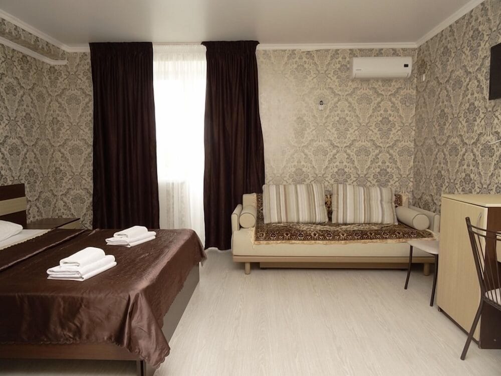 Guest House Amur ligger i Vityazevo, 2 min promenad från Lotusdalen och 6 min från Nöjesparken Vizantia. Detta pensionat ligger 1,9 km från Olympia vattenpark och 2,9 km från S:t George-kyrkan. Känn dig som hemma i ett av de 21 luftkonditionerade rummen med kylskåp och platt-tv. Gratis wi-fi gör att du kan hålla dig uppkopplad, och digital-tv erbjuder underhållning. Privat badrum med gratis toalettartiklar och hårtorkar. På rummet finns värdeförvaringsskåp och strykutrustning kan fås på begäran. Städning erbjuds i begränsad utsträckning. Avstånd avrundas till närmsta decimal.