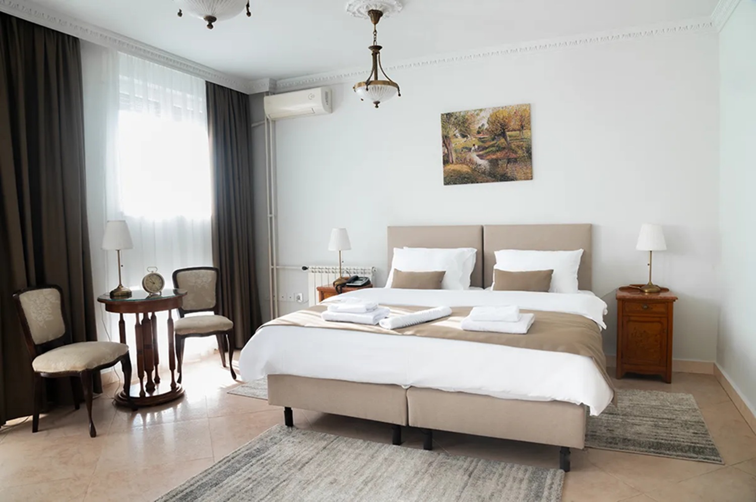 Hotel Jardin är en elegant byggnad i Belgrad, skyddad som en kulturell tillgång i staden. Detta är en byggnad som har en egen privat trädgård, men som är belägen i den mest attraktiva centrala delen av Belgrad, där alla betydande turistattraktioner i Belgrad finns. Isolerat från stadens brus erbjuder Hotel Jardin sina gäster fullständig lugn och avskildhet. Hotellet ligger 18 km från Nikola Tesla International Airport (Belgrad), 300 m från Nationalförsamlingens hus, och inte mer än 900 m från gågatan Knez Mihajlova Street. Inom hotellet har gästerna till sitt förfogande en charmig lobby med en 24-timmarsreception, en affärshörna och en restaurang med en bekväm trädgård, vilken serverar en mängd internationella och lokala rätter, samt vegetariska alternativ. Gratis WiFi finns tillgängligt i alla rum och även i hotellets skuggiga trädgård. Alla rum renoverades år 2025. De är mycket rymliga, luftkonditionerade och utrustade med en platt-TV med kabelkanaler, ett användbart skrivbord, ett kylskåp/minibar och ett värdeskåp, samt en sittgrupp. Badrummet har en duschkabin, badrumsutrustning och en hårtork. Ytterligare bekvämligheter som ingår är tofflor, en badrock och toalettartiklar.