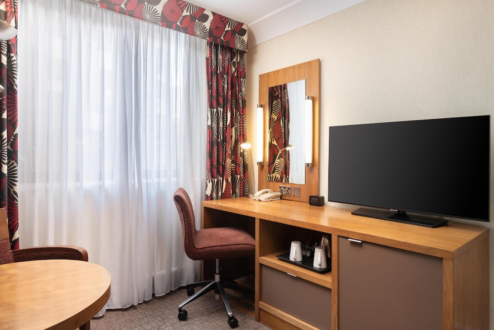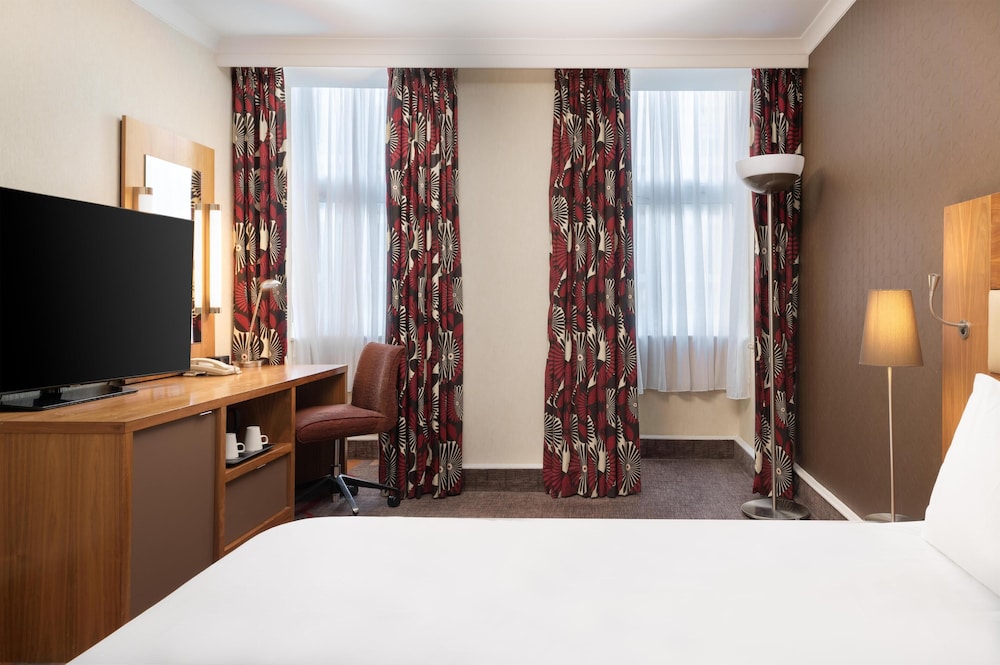 I området London centrum i London ligger Hilton London Olympia, fem minuters promenad från Olympia Events och 2 min med bil från Westfield London shoppingcenter. Detta hotell ligger 1,8 km från Kensington Palace och 2,2 km från Royal Albert Hall. Känn dig som hemma i ett av de 404 luftkonditionerade rummen med kylskåp och platt-tv. Gratis wi-fi gör att du kan hålla dig uppkopplad, och digital-tv erbjuder underhållning. Privat badrum med dush över badkar, djupa badkar och gratis toalettartiklar. På rummet finns telefon, värdeförvaringsskåp och skrivbord. Avstånd avrundas till närmsta decimal.