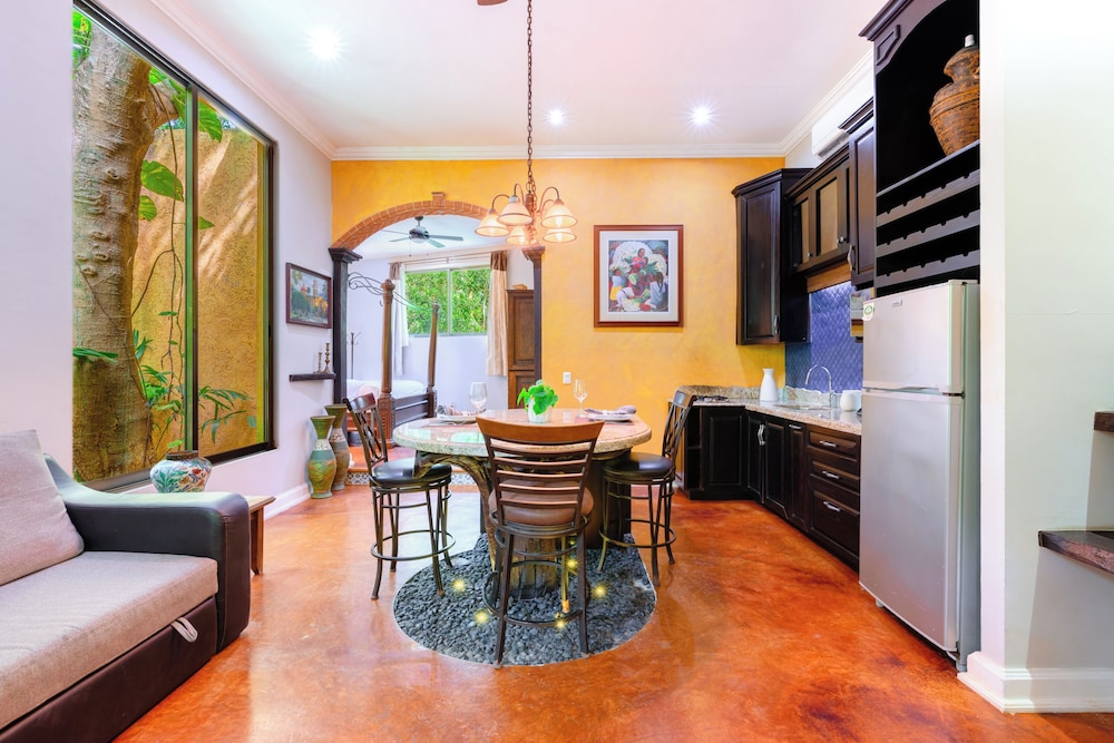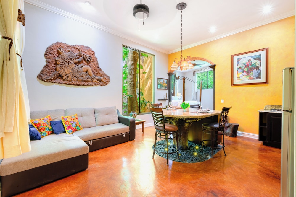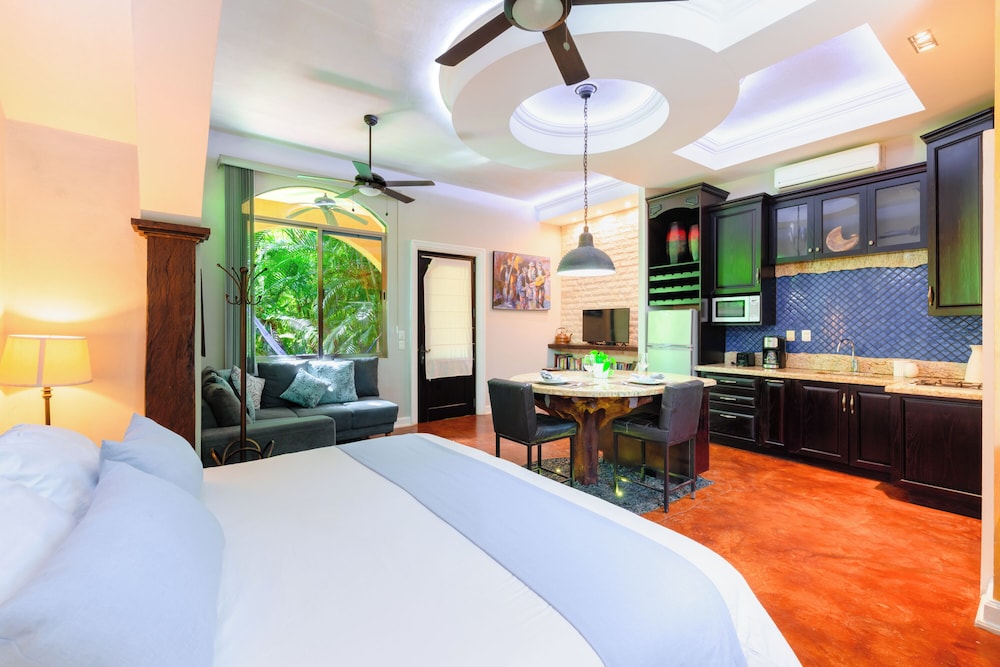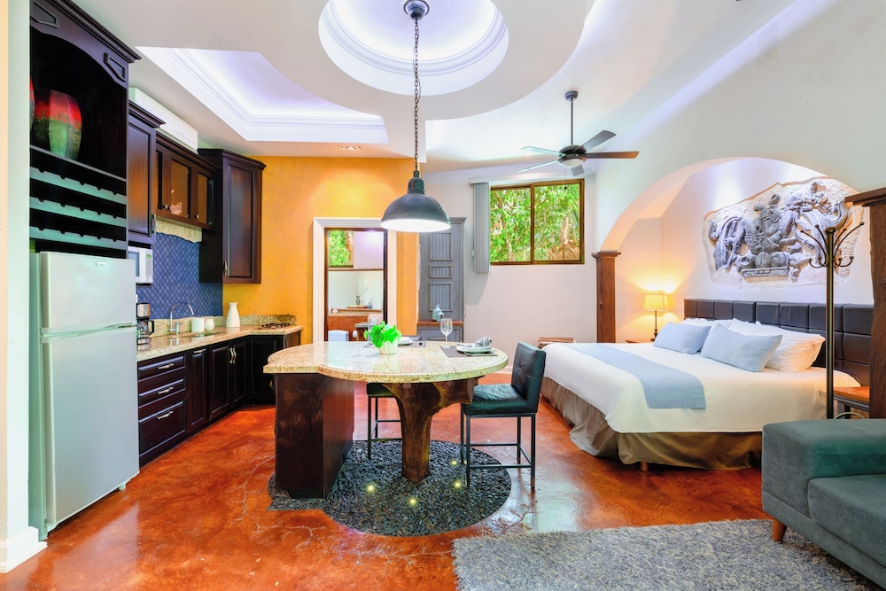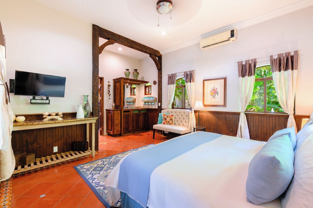 La Hacienda Hotel, at Xcaret ligger i Playa del Carmen (i området Playa del Carmen Centro), 4 min promenad från Quinta Avenida och 8 min från Playa del Carmen stora strand. Detta hotell med spa ligger 0,9 km från Playa Mamitas och 1,2 km från Playacar. Känn dig som hemma i ett av de 8 luftkonditionerade rummen med minibarer och espressobryggare. Sängen har duntäcken och sängtillbehör av högsta kvalitet. Gratis wi-fi ser till att du kan hålla dig uppkopplad, och en 42-tums platt-tv med Netflix erbjuder all underhållning du behöver. Privat badrum med dusch, regndusch och hårtorkar. Avstånd avrundas till närmsta decimal.