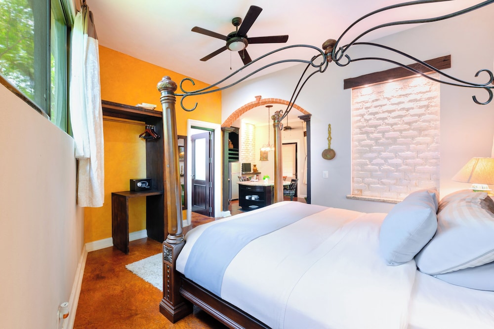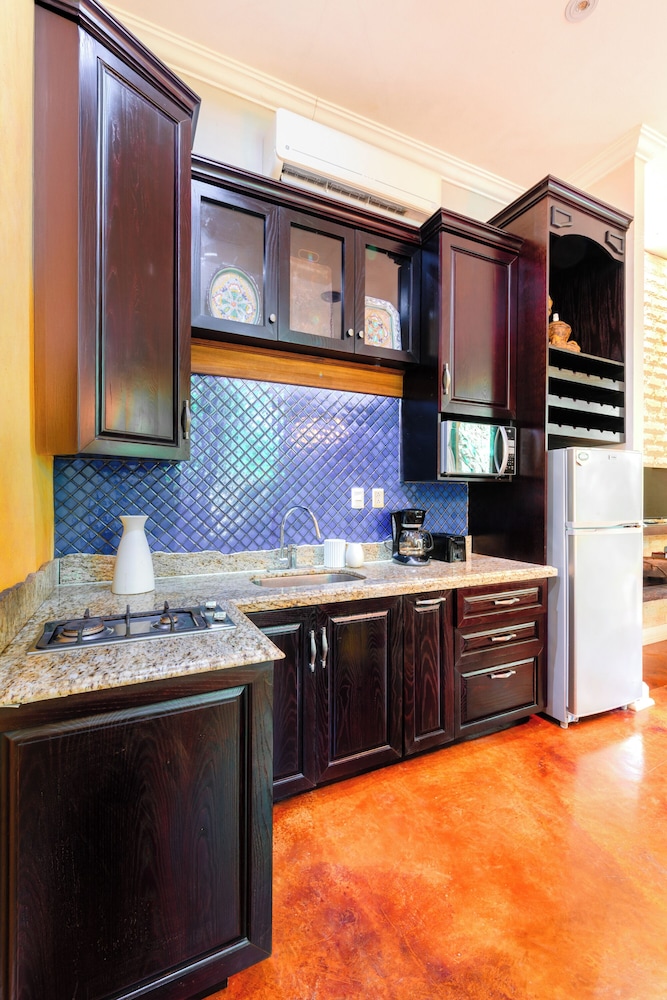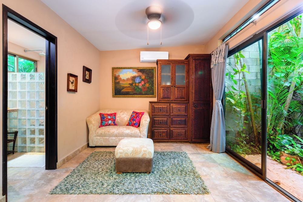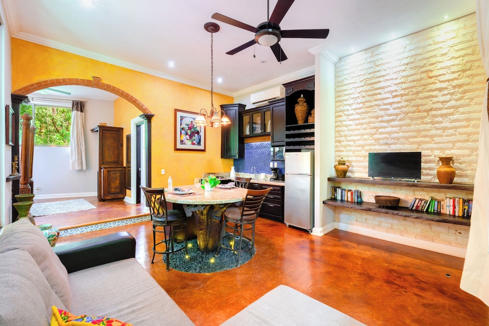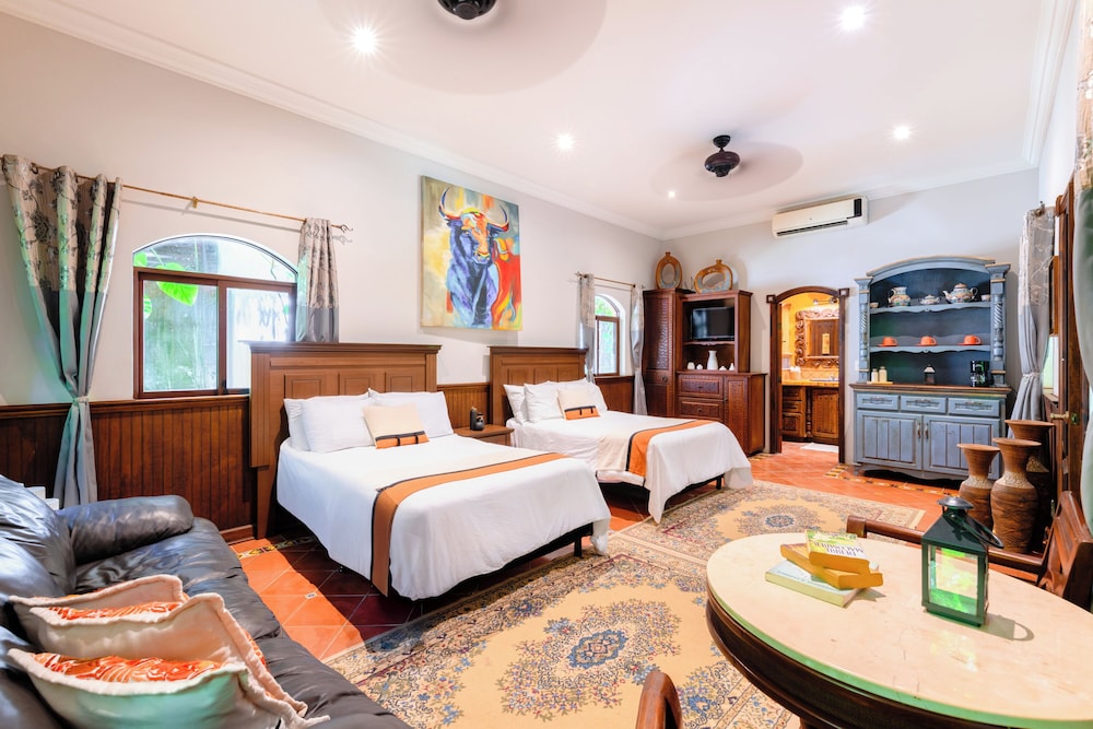 La Hacienda Hotel, at Xcaret ligger i Playa del Carmen (i området Playa del Carmen Centro), 4 min promenad från Quinta Avenida och 8 min från Playa del Carmen stora strand. Detta hotell med spa ligger 0,9 km från Playa Mamitas och 1,2 km från Playacar. Känn dig som hemma i ett av de 8 luftkonditionerade rummen med minibarer och espressobryggare. Sängen har duntäcken och sängtillbehör av högsta kvalitet. Gratis wi-fi ser till att du kan hålla dig uppkopplad, och en 42-tums platt-tv med Netflix erbjuder all underhållning du behöver. Privat badrum med dusch, regndusch och hårtorkar. Avstånd avrundas till närmsta decimal.