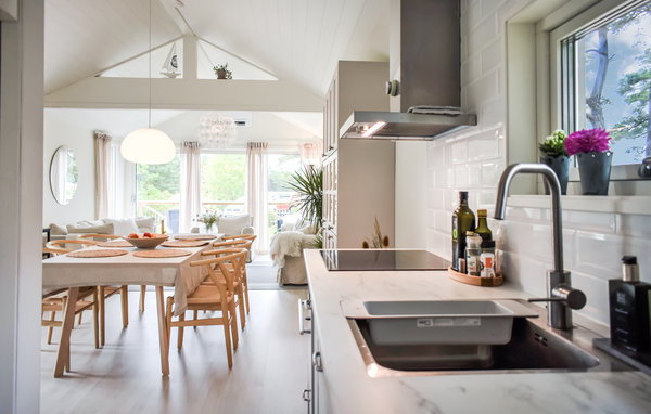Välkommen till detta vackra hus som präglas av en fantastisk arkitektur. Här möts ni av en ljus och inbjudande interiör, mysiga sovrum och ett vardagsrum med kök i öppen planlösning. Huset har också ett stort annex där ett par kan sova. Lägg upp fötterna i sofforna eller laga utsökta måltider i det välutrustade köket.