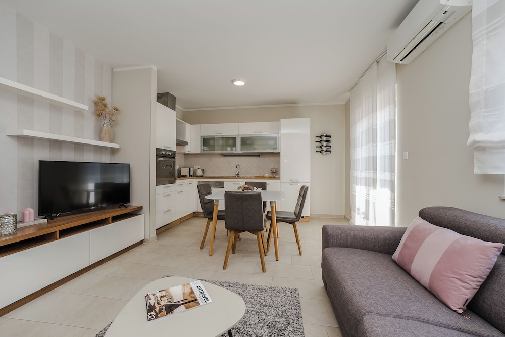 Apartments Villa Karla ligger i Zadar nära stranden, en fem minuters bilfärd från och Krešimir Ćosić arena och Landporten. Detta hotell ligger 1,7 km från Kolovare-stranden och 2,4 km från Zadars katedral. Känn dig som hemma i ett av de 6 luftkonditionerade rummen som har kök med kylskåp och ugn. Gratis wi-fi gör att du kan hålla dig uppkopplad, och en platt-tv med kabelkanaler erbjuder all underhållning du behöver. På rummet finns värdeförvaringsskåp och skrivbord. Städning erbjuds i begränsad utsträckning. Avstånd avrundas till närmsta decimal.