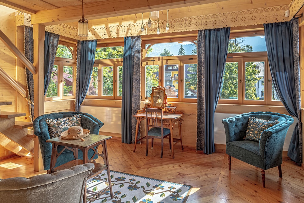 Mitt i Zakopane ligger Willa Elżbiecina, en knapp fem minuters bilfärd från Krupowki-gatan och Tarta-museet. Detta pensionat i lyxstil ligger 16,1 km från Gubałówka och 18,9 km från Chochołowskie Termy. Skäm bort dig och bo i ett av 8 individuellt inredda rum med privata bubbelpooler inomhus och LED-tv. Sängen har memory foam-madrass och egyptiska bomullslakan. Rummen har privata inredda balkonger/terrasser. Kök utrustat med stor kyl/frys, ugn och spishäll. Med gratis fast internetanslutning och wi-fi håller du dig uppkopplad, medan digitalkanaler står för underhållningen. Avstånd avrundas till närmsta decimal.
