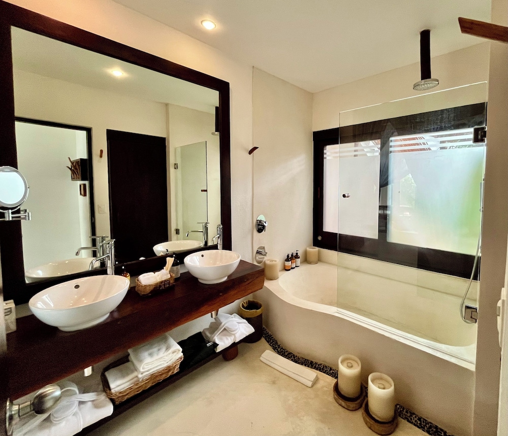 The Beach Tulum Hotel ligger i Tulum (i området Zona Hotelera), fem minuters bilfärd från Sian Ka'an biosfärsreservat och Tulum nationalpark. Denna resort vid stranden ligger 5,1 km från Las Palmas offentliga strand och 5,9 km från Playa Paraiso. Känn dig som hemma i ett av de 28 rummen med minibarer. Rummen har privata inredda balkonger/terrasser. Privat badrum med gratis toalettartiklar och hårtorkar. På rummet finns värdeförvaringsskåp och kaffe- och tebryggare. Städning erbjuds dagligen. Avstånd avrundas till närmsta decimal.